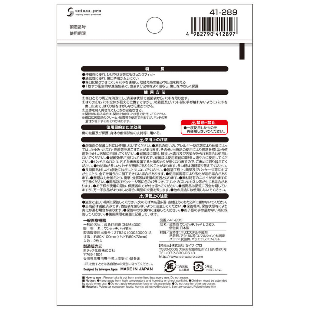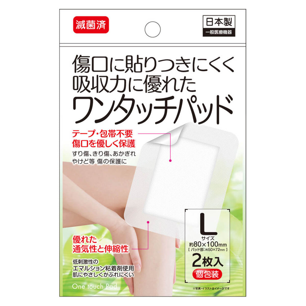 上からテープや包帯で固定する必要のないワンタッチ式のパッド。