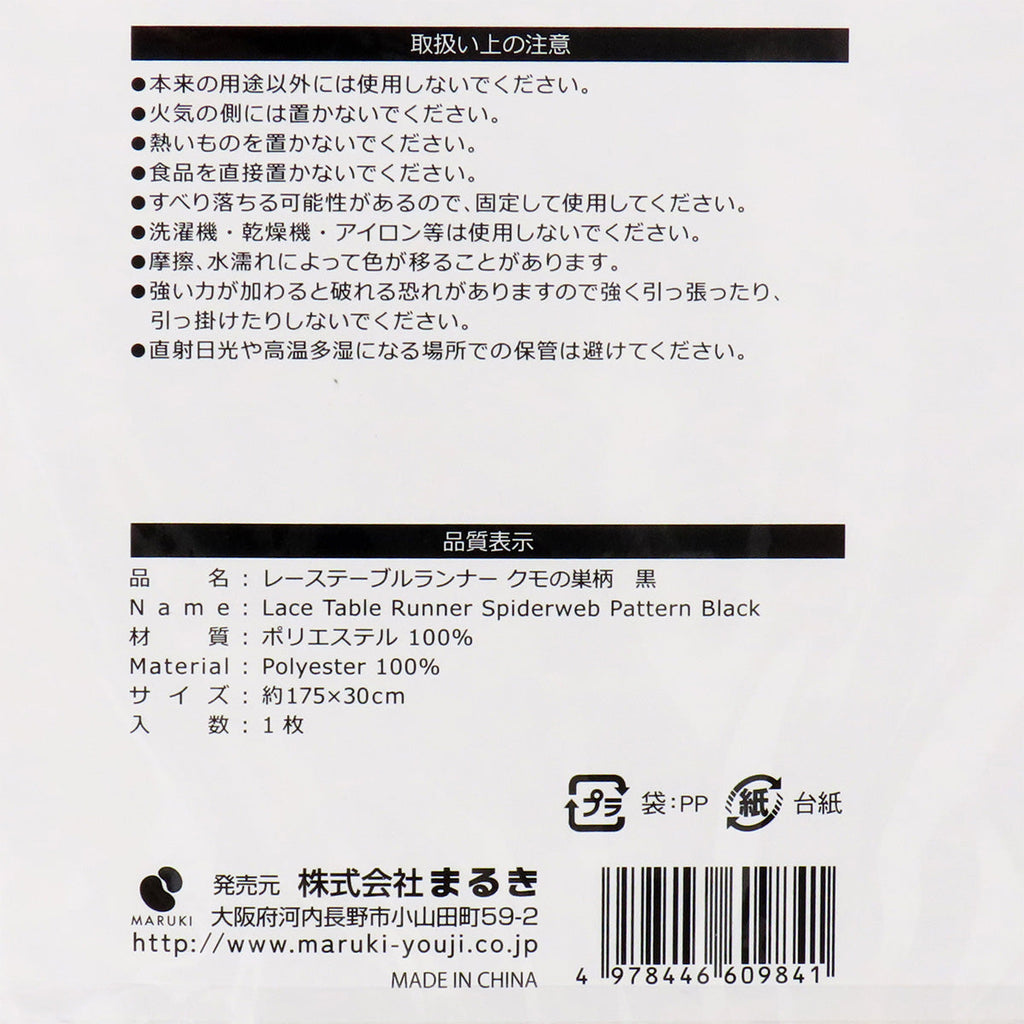 【まとめ買い】レーステーブルランナー クモの巣柄 黒0490/325795