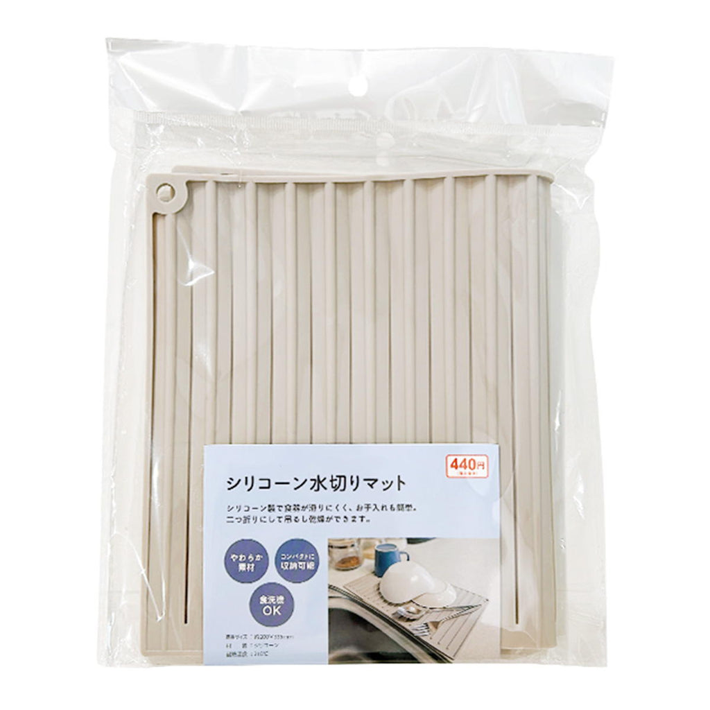 シリコーン素材で丸洗いできる手入れが簡単な水切りマット。 折りたたんでフックにかけられるフック穴付き。 耐熱温度:210℃食洗機:OK