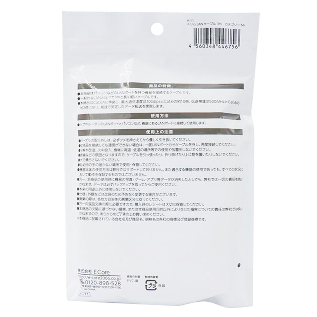 本商品はパソコンなどのLANポートを持つ機器を接続するケーブルです一般的なLANと比べて3mと長く細いケーブルです本商品はCat.6Aに準拠し最大通信速度は10GbpsとCat.6の約10倍,伝送帯域は500MHzとCat.6の約2倍になり高速で安定したデータ転送を実現します。