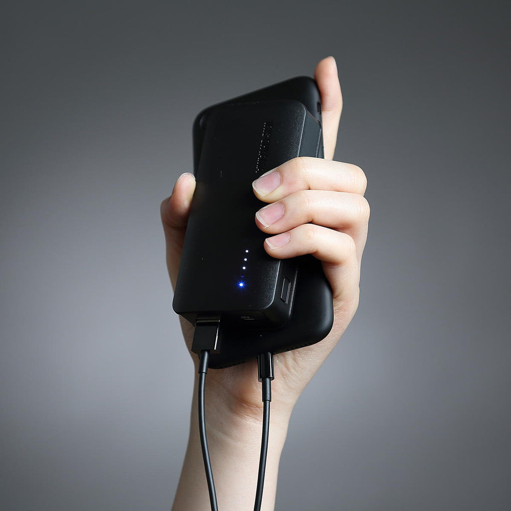 コンパクトでポケットやバッグにすっきり収納できるモバイルバッテリーです。 イヤホン等の小型機器に安定した電流で充電できる低電流モードを搭載。 バッテリー容量6,700mAh。 スマートフォン約1回分。