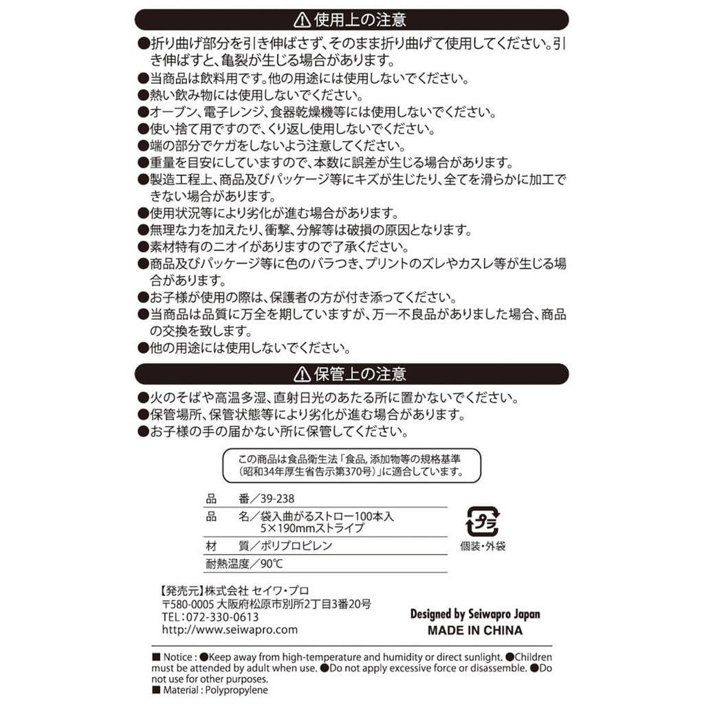 この商品ページは大量購入に対応した「まとめ買い専用ページ」です。大量購入以外のご注文は単品購入ページをご利用ください。こちらのアイテムは、1本ずつ袋に入って衛生的なストローです。 曲がるタイプ 100本入りです。 個包装で衛生的、食品衛生法適合品です。