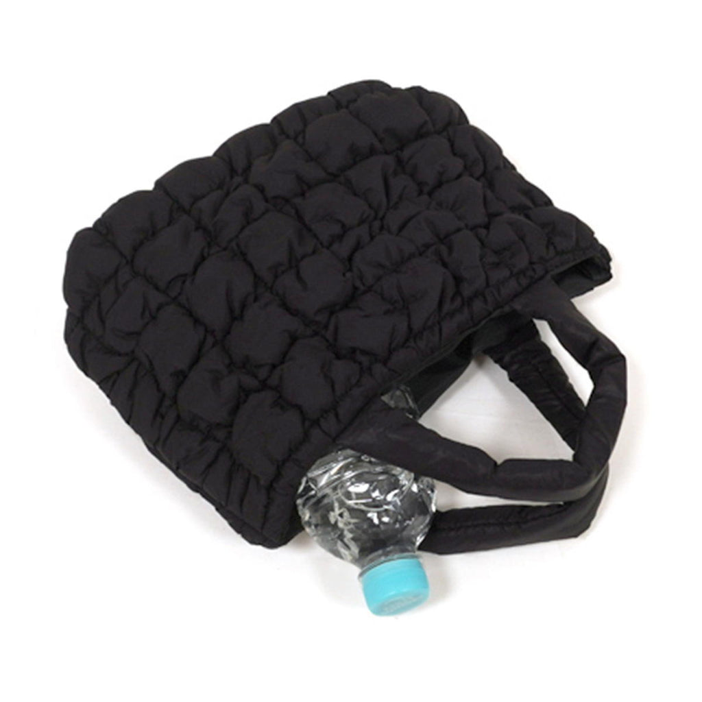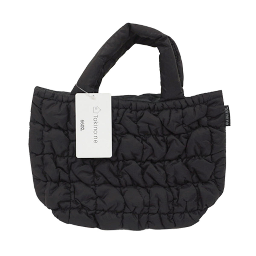 ブラックのふかふかキルティング生地にTokinone織ネーム付きのトートバッグです。