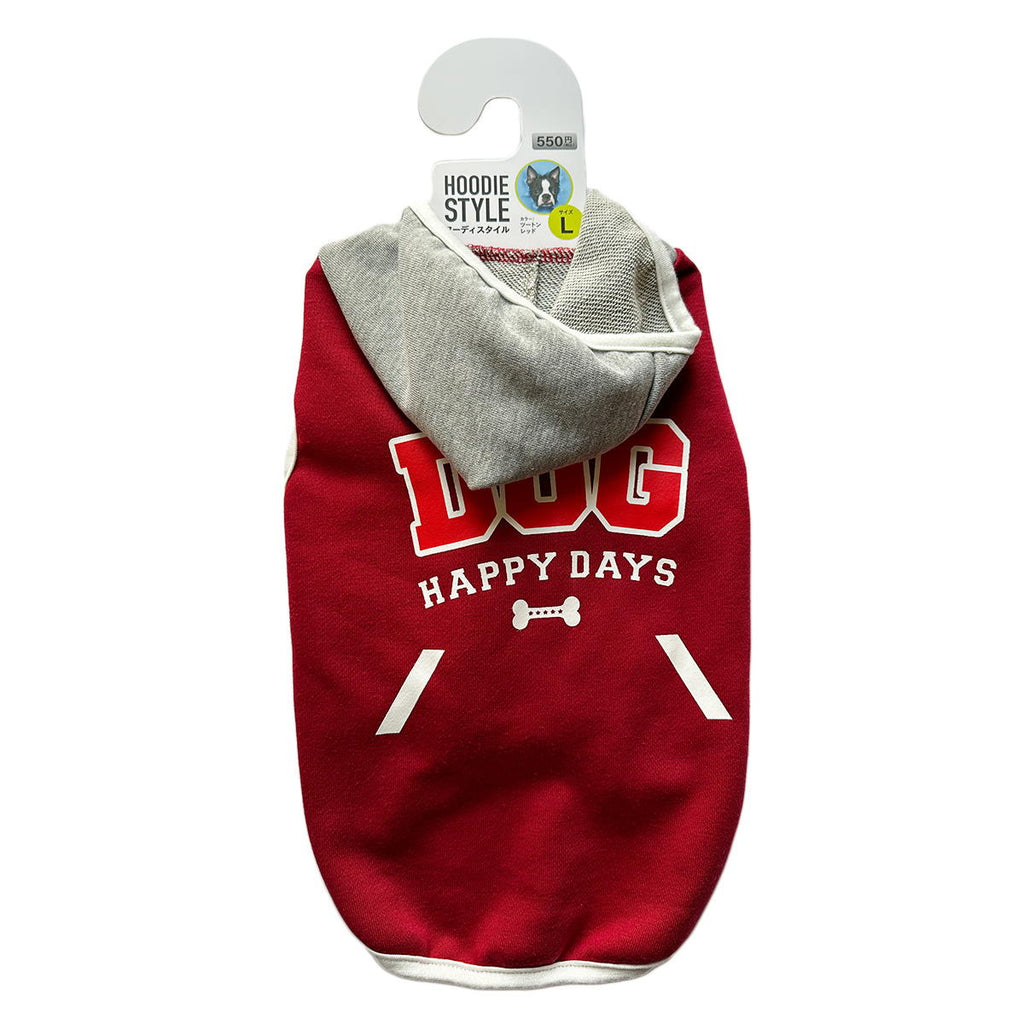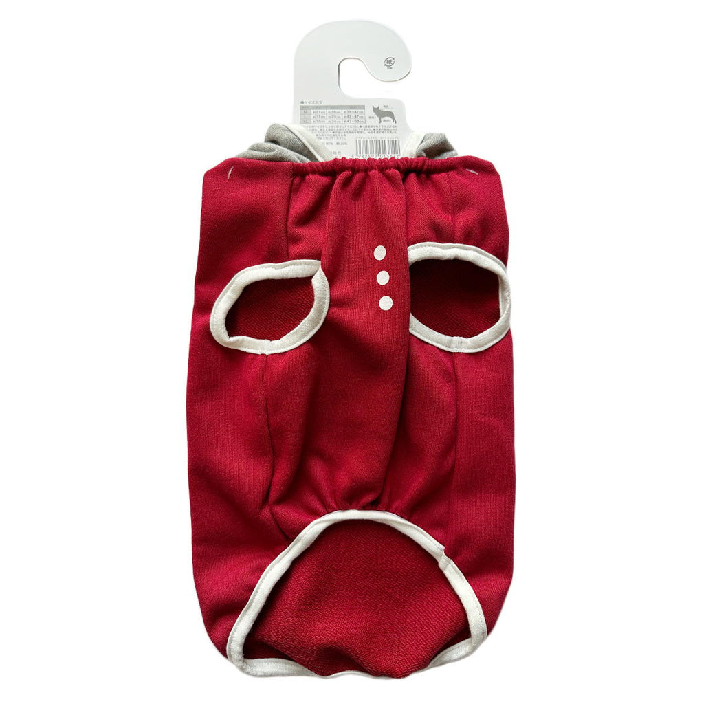 犬服フーディースタイルLレッドとグレーのツートンカラー