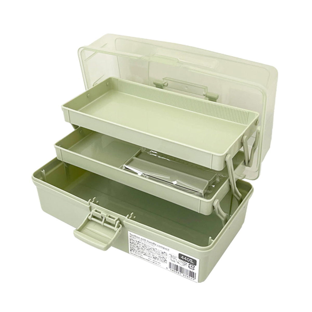 3段収納のツールボックスです。 用途に合わせて動かせる仕切り4枚付き。