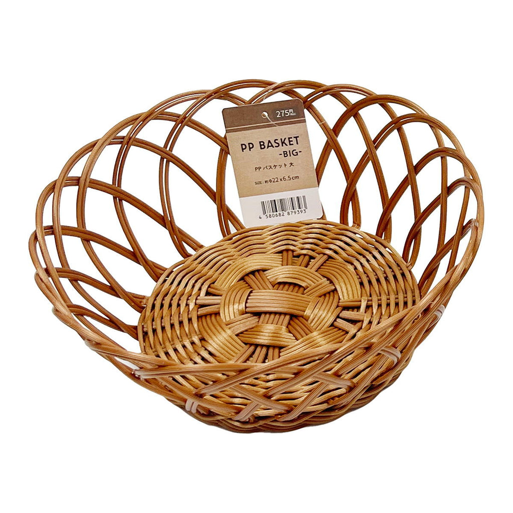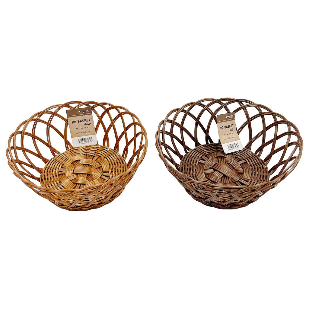 PP製の丈夫で光沢のあるバスケット。 キッチン小物を置いたり、散らばりがちな雑貨を入れたり、お菓子をいれても♪ ナチュラルな風合いですっきりと収納できる2色アソートバスケットです。