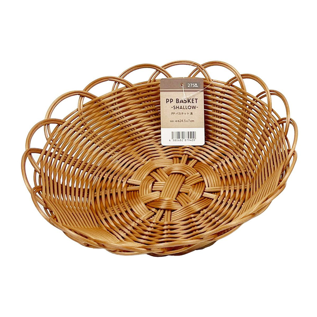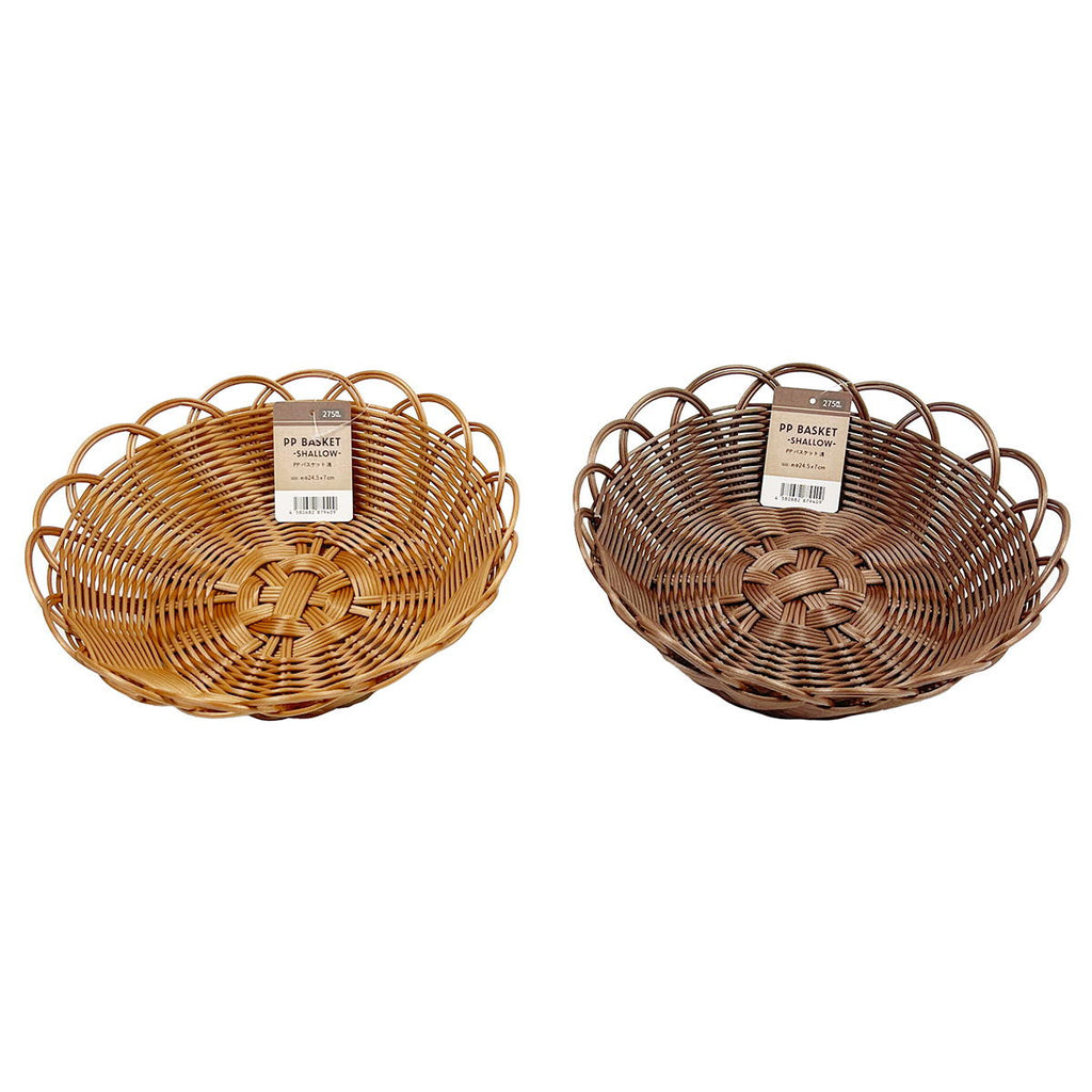 PP製の丈夫で光沢のあるバスケット。 キッチン小物を置いたり、散らばりがちな雑貨を入れたり、お菓子をいれても♪ ナチュラルな風合いですっきりと収納できる2色アソートバスケットです。