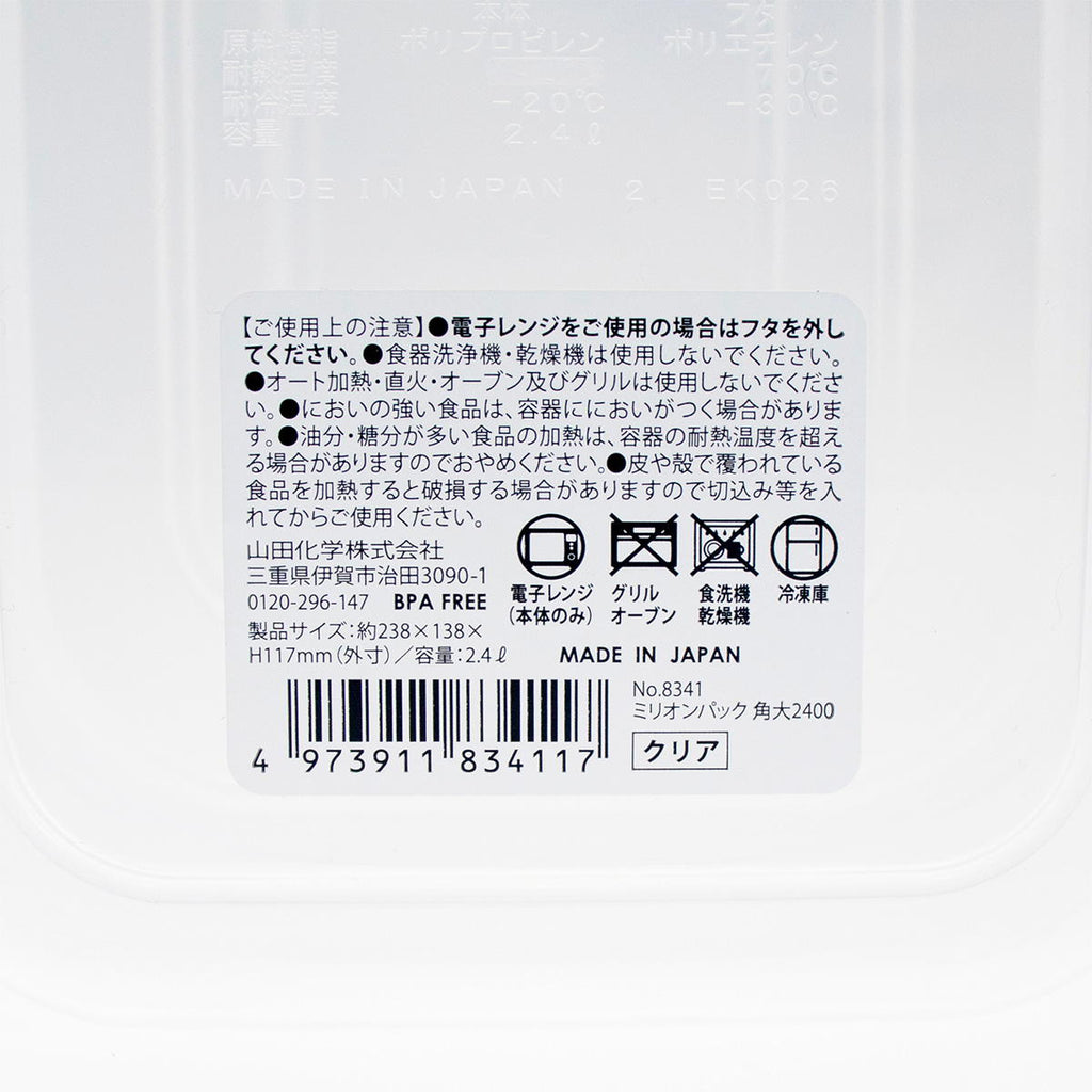容量:約2.4L、耐熱/耐冷温度:約本体140℃/-20℃、フタ約70℃/-30℃