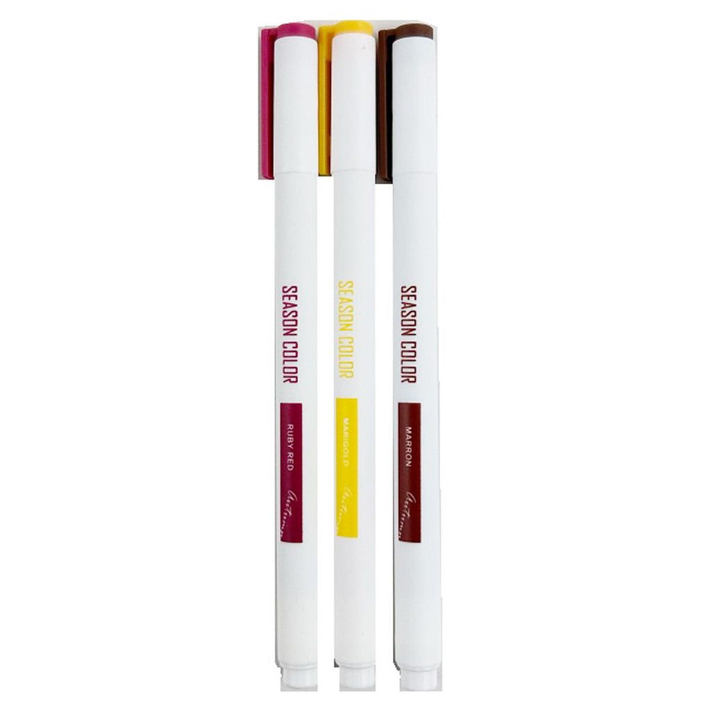 スタディライフを華やかにするマーカーペンです。 ルビーレッド/マリーゴールド/マロンの3色入