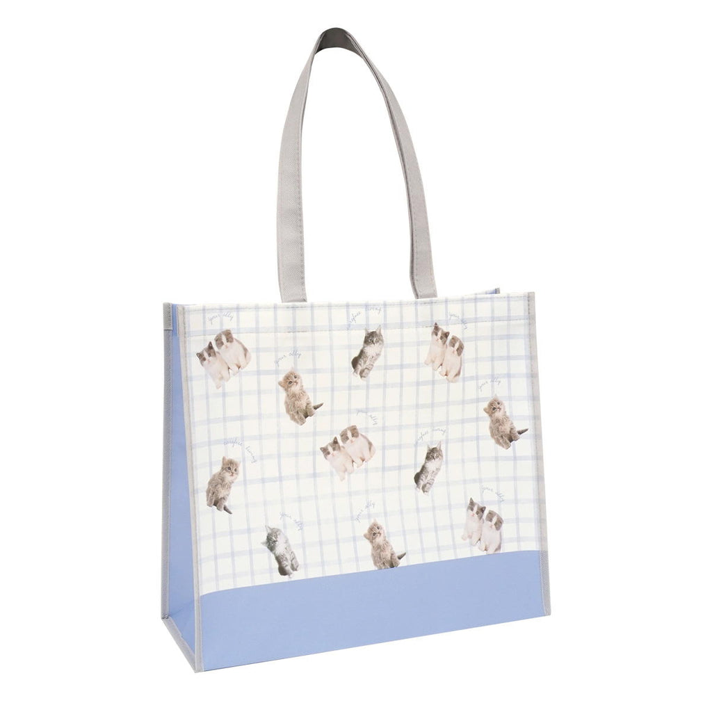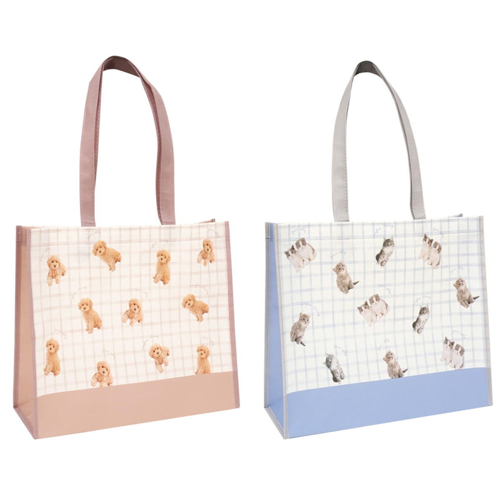 不織布にコーティングを施したトートバッグです。 イヌとネコの写真を使用したデザインです。 ギフトや書類を入れるのに便利なサイズです。