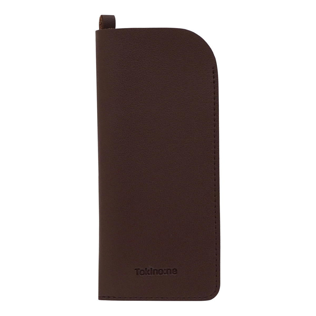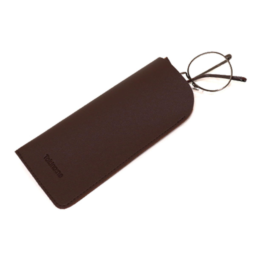 厚めの合皮を使用したブラウンのメガネケースです。 オープンポケットタイプで出し入れがしやすいです。