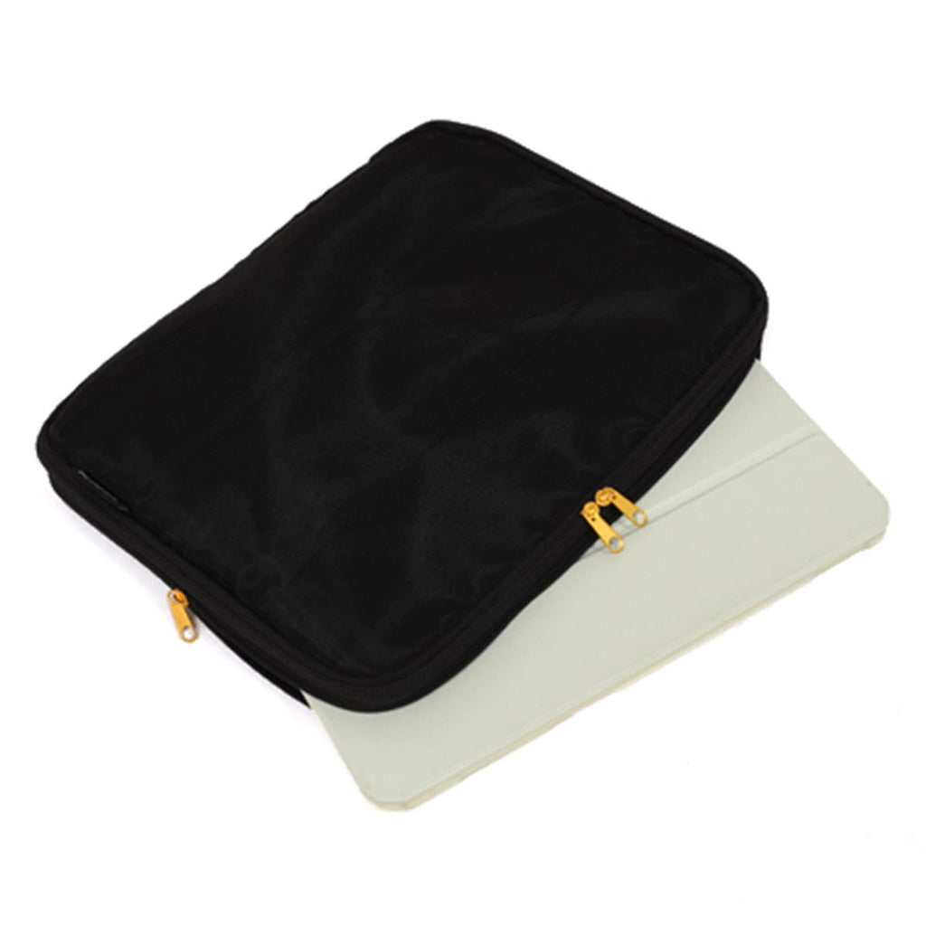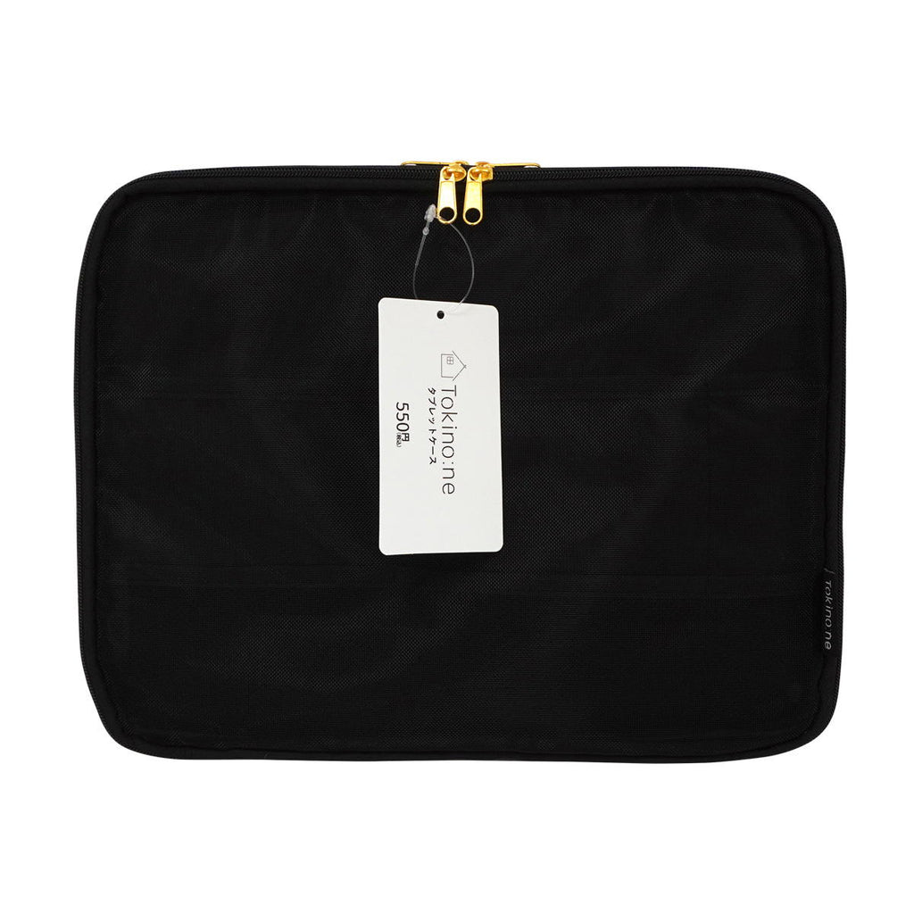 11インチまでのサイズを収納できるブラック色のタブレットケースです。 外側の複数ポケットにコードなどを分けて収納することが出来ます。