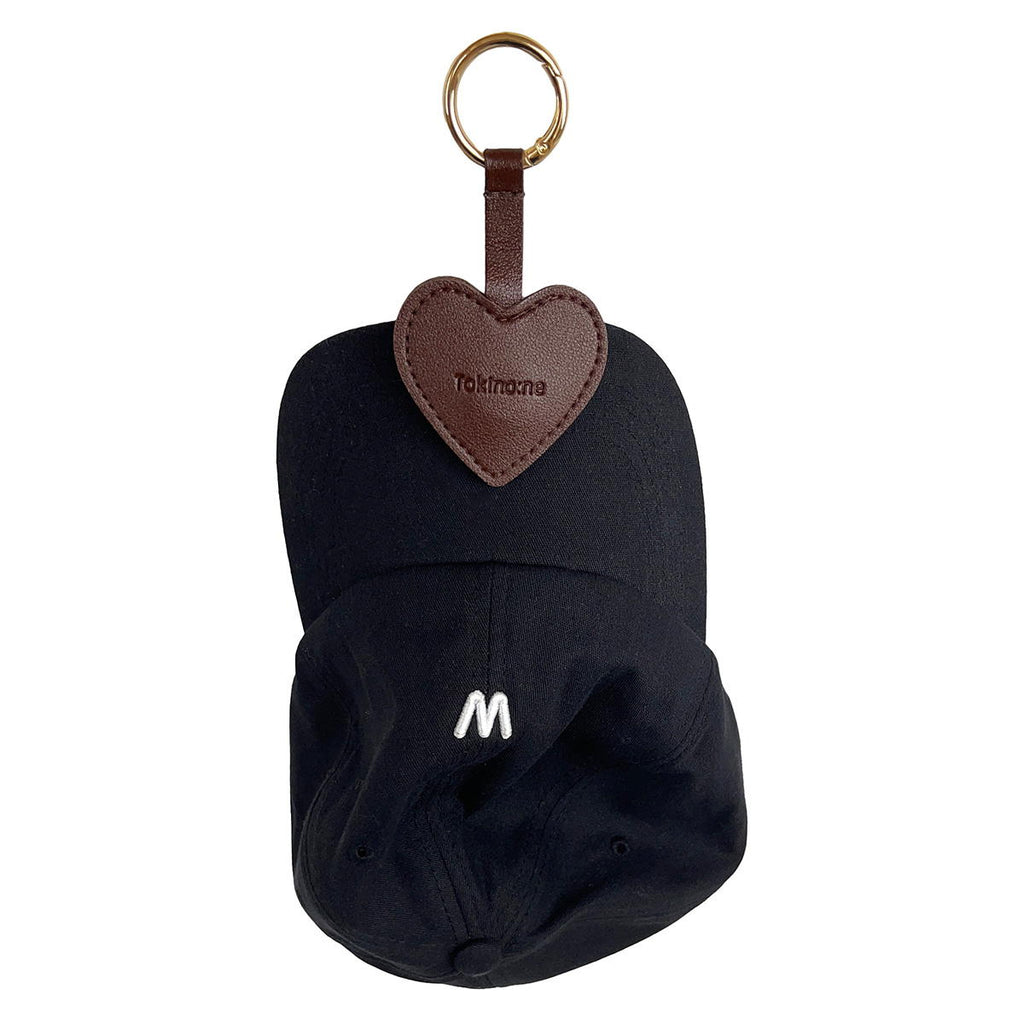 バッグ等に金具部を装着して、2つのマグネットで帽子やマスクなどをはさんで持ち運べます。 おしゃれなハート型です。 色:ブラウン。