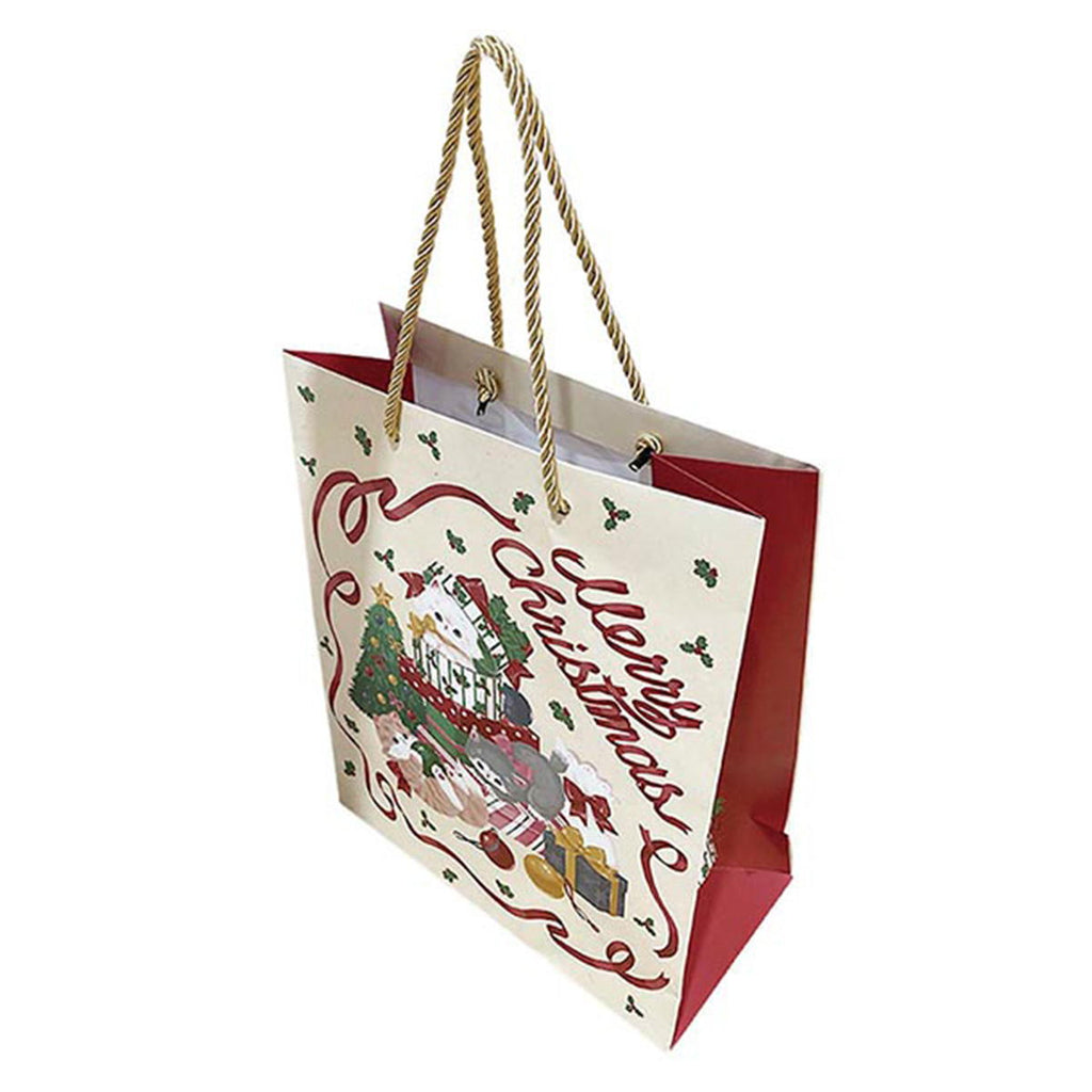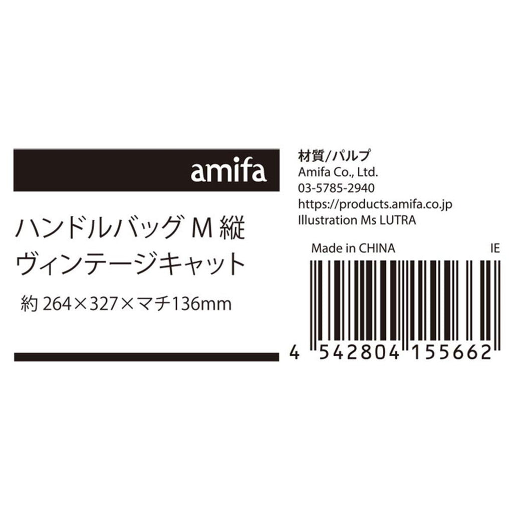 マチが広めで大きいプレゼントへも使いやすいハンドルバッグです。 ヴィンテージライクなタッチの猫たちが可愛いデザインです。
