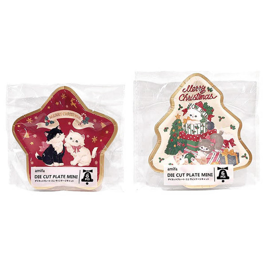 料理の小分けに便利なダイカットミニプレートです。 星型とツリー型です。 ヴィンテージライクなタッチの猫たちが可愛いデザインです。