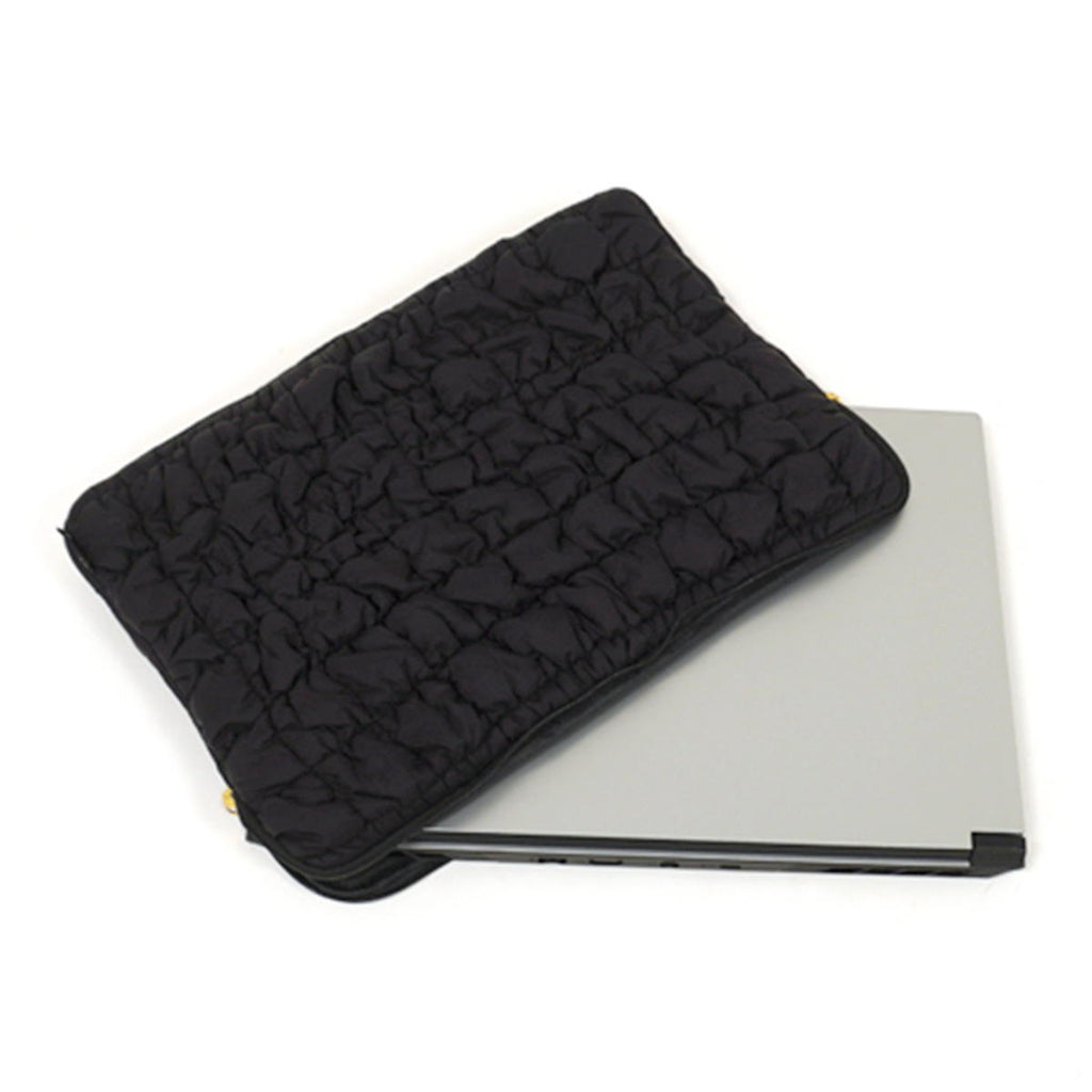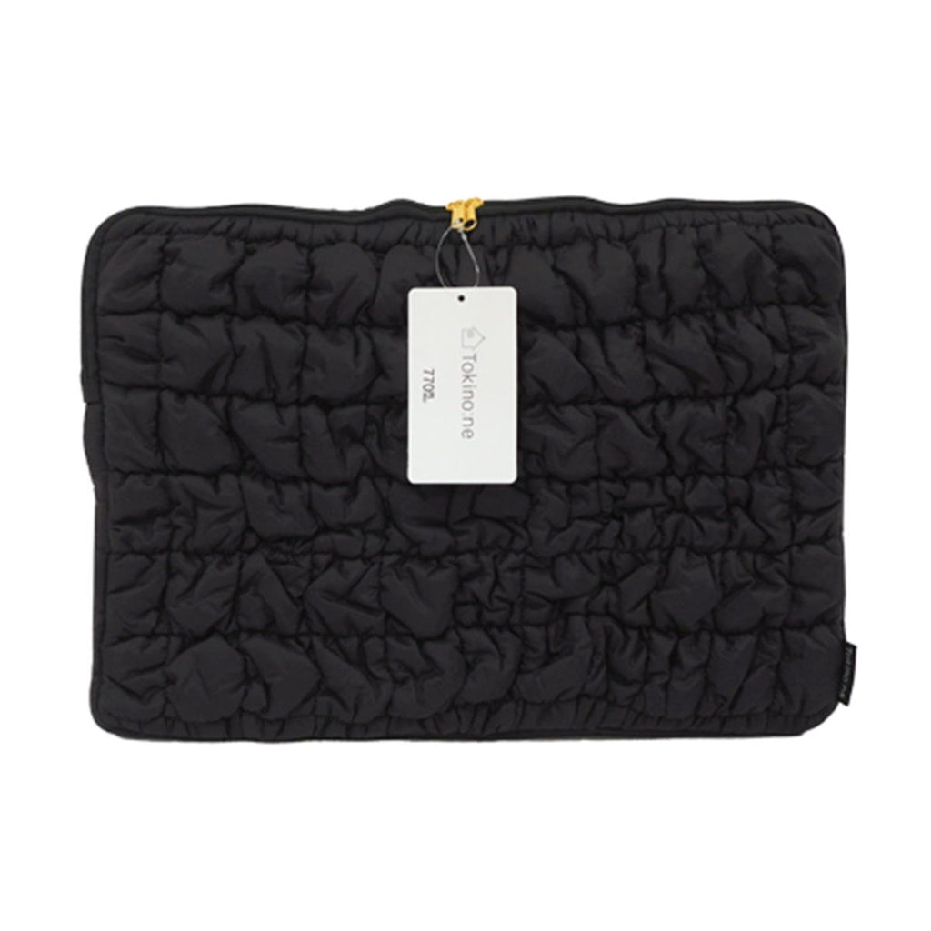 ブラックのふかふかキルティング生地にTokinone織ネーム付きのノートPCケースです。 13インチまでのサイズを収納できます。