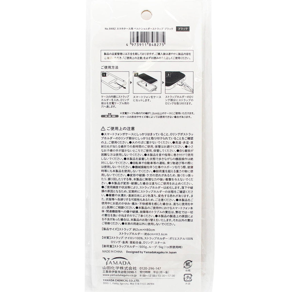 | 材質 | ストラップ:ナイロン100%、ストラップホルダー:ポリエステル100%、Oリング・金具:亜鉛合金、Dリング:スチール |