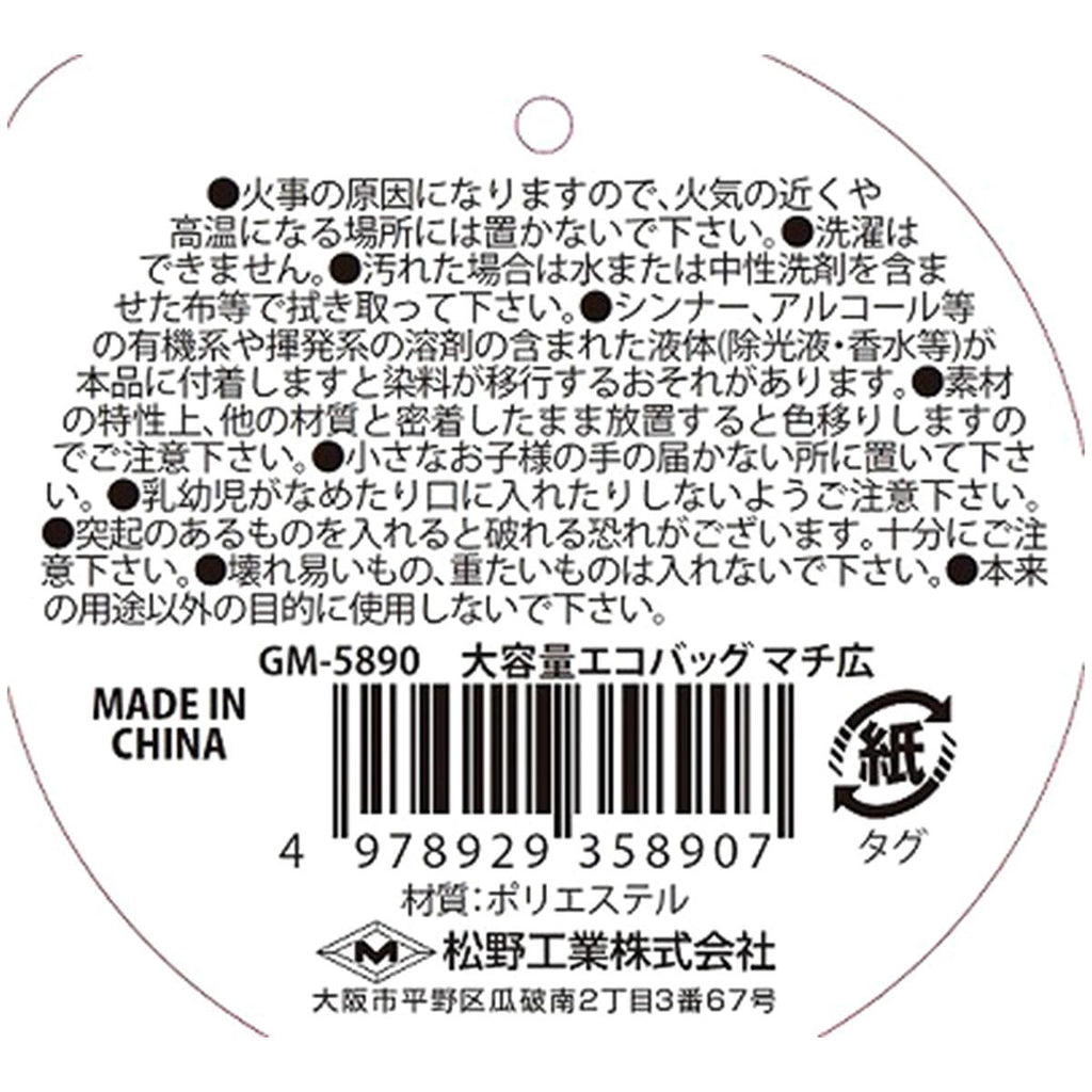 面積の大きい荷物に便利なマチの広いエコバッグです。