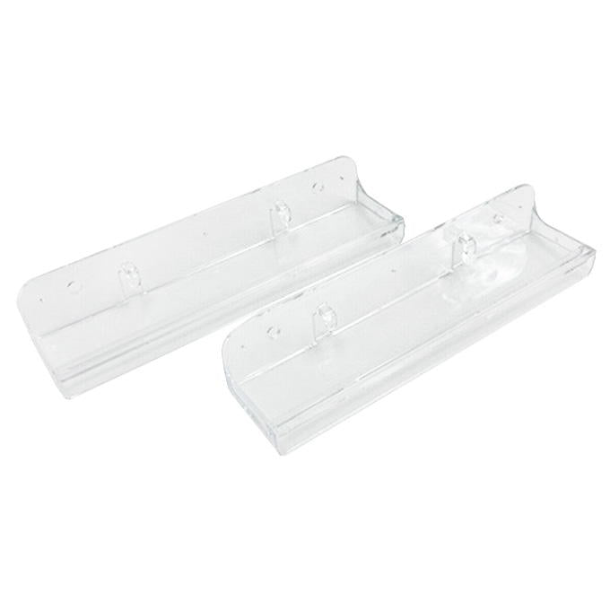 壁にピンやネジ等でつけてディスプレイをすることができるラックになります。 透明なので目立ちにくくなっております。 2個入りです。