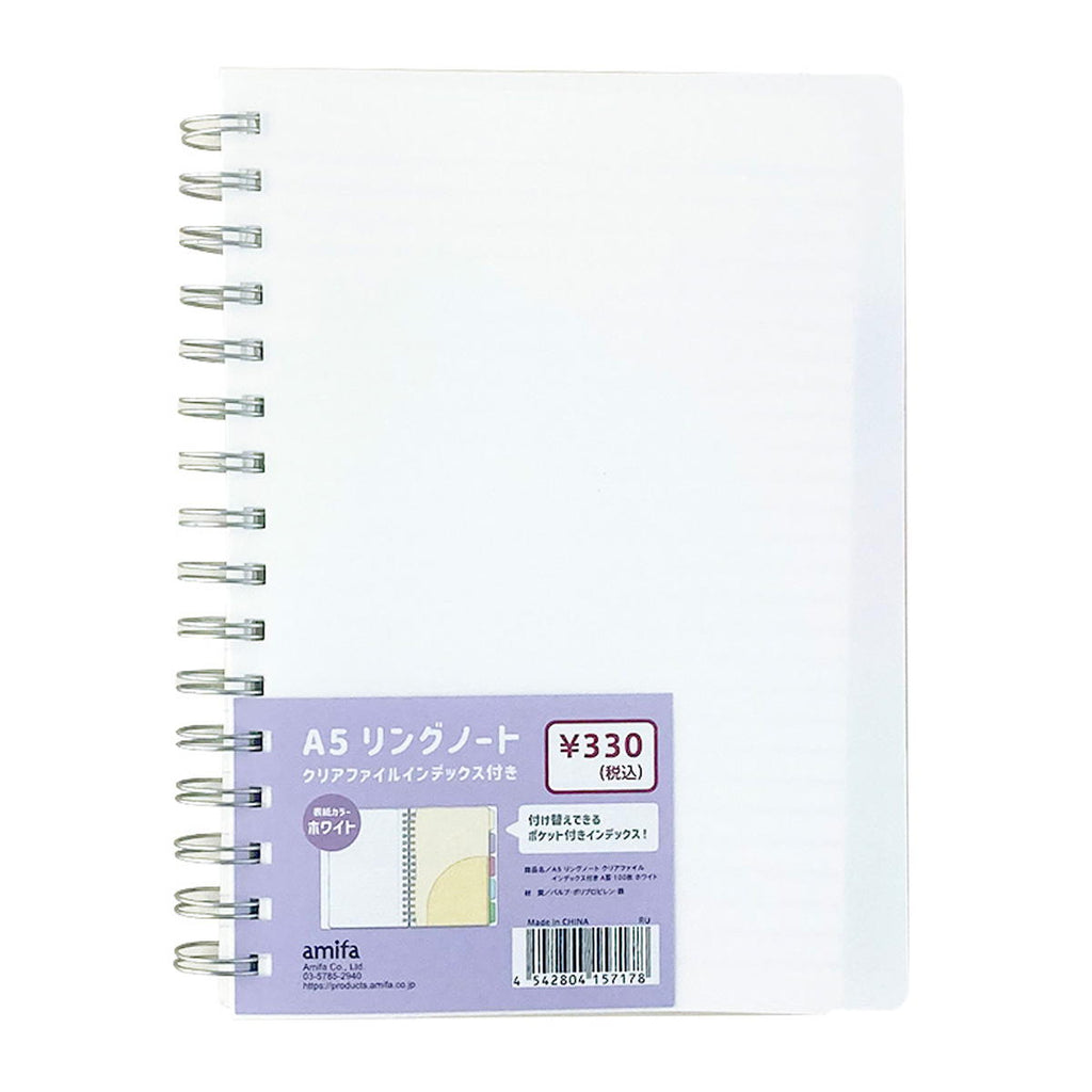 A5サイズ・A罫の使いやすいシンプルなリングノートです。 PP表紙で汚れに強く、クリアファイルインデックス付きです。 中のノートはミシン目付きです。