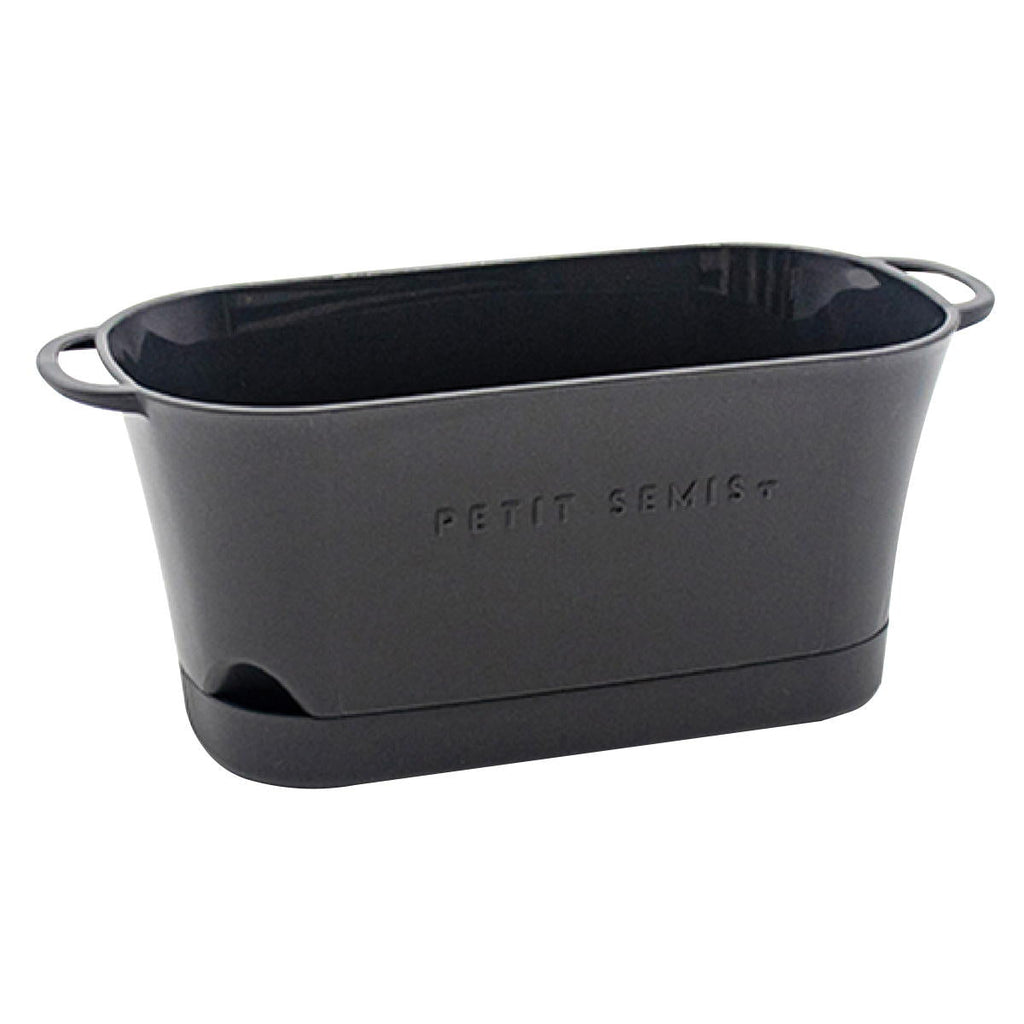 鉢本体と受皿がセットの両側の取手が可愛いバスケット型のミニプランターです。 水溜量が分かる穴付きです。