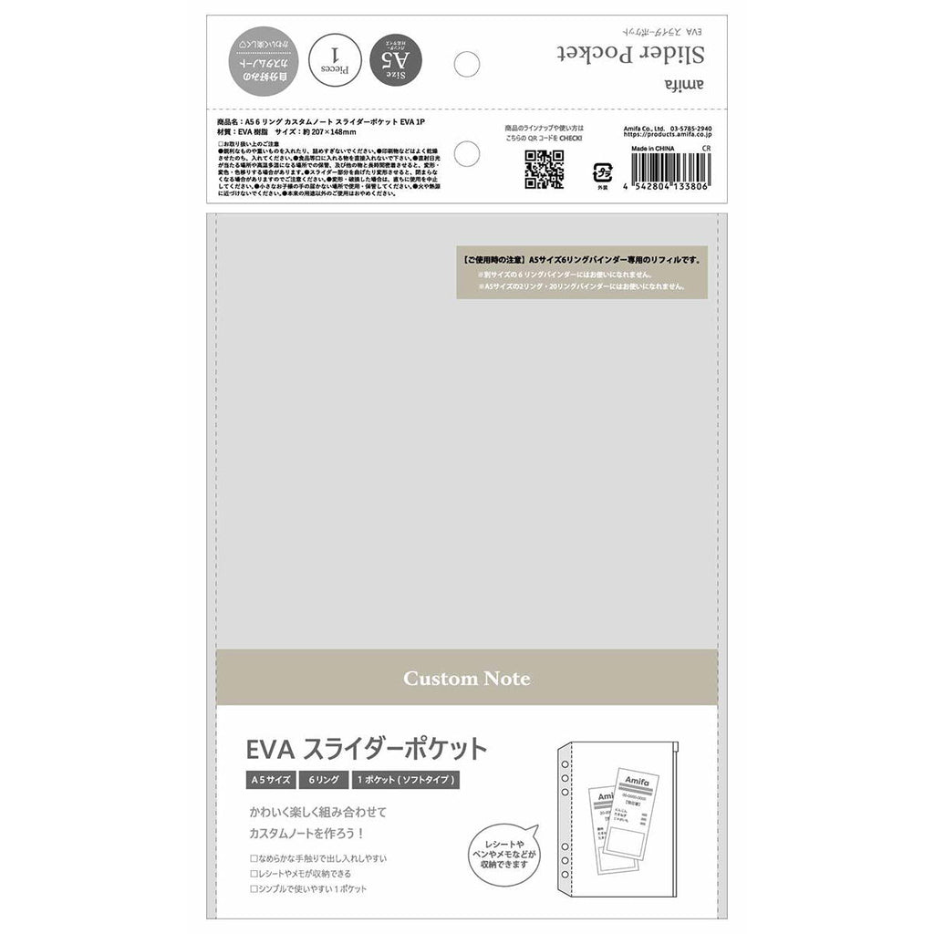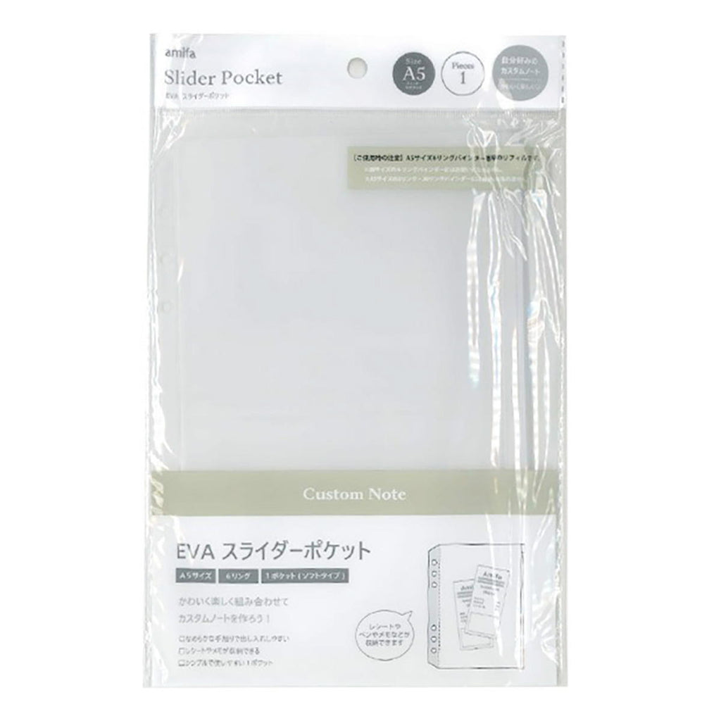 小物を入れるのに便利なA5・6リングバインダー用スライダーポケットです。 EVA素材で柔らかく手に馴染みます。