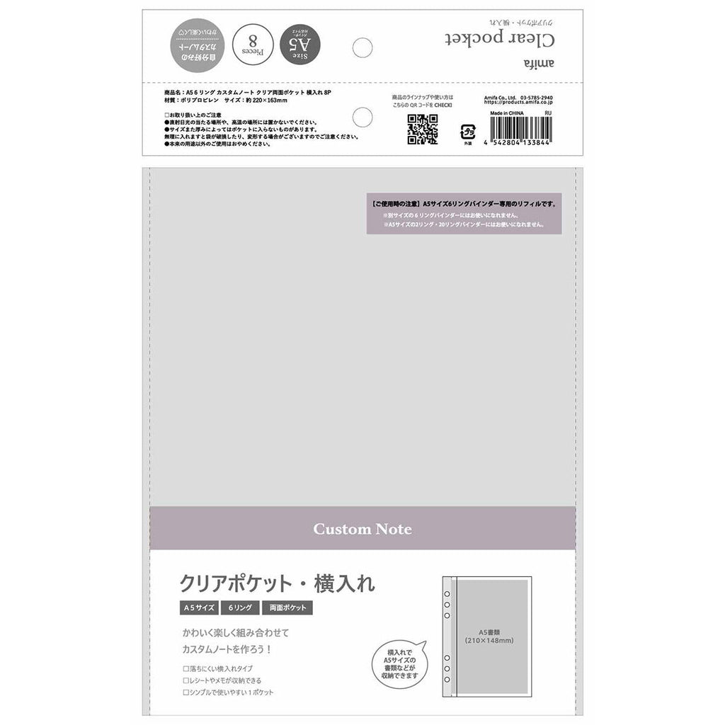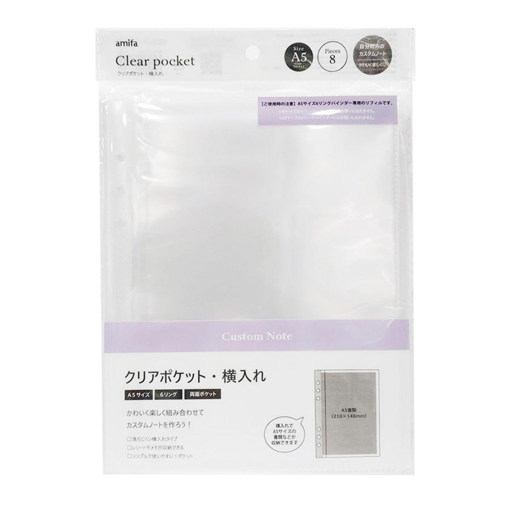 A5・6リングバインダー用クリアポケットです。 横から出し入れが可能です。