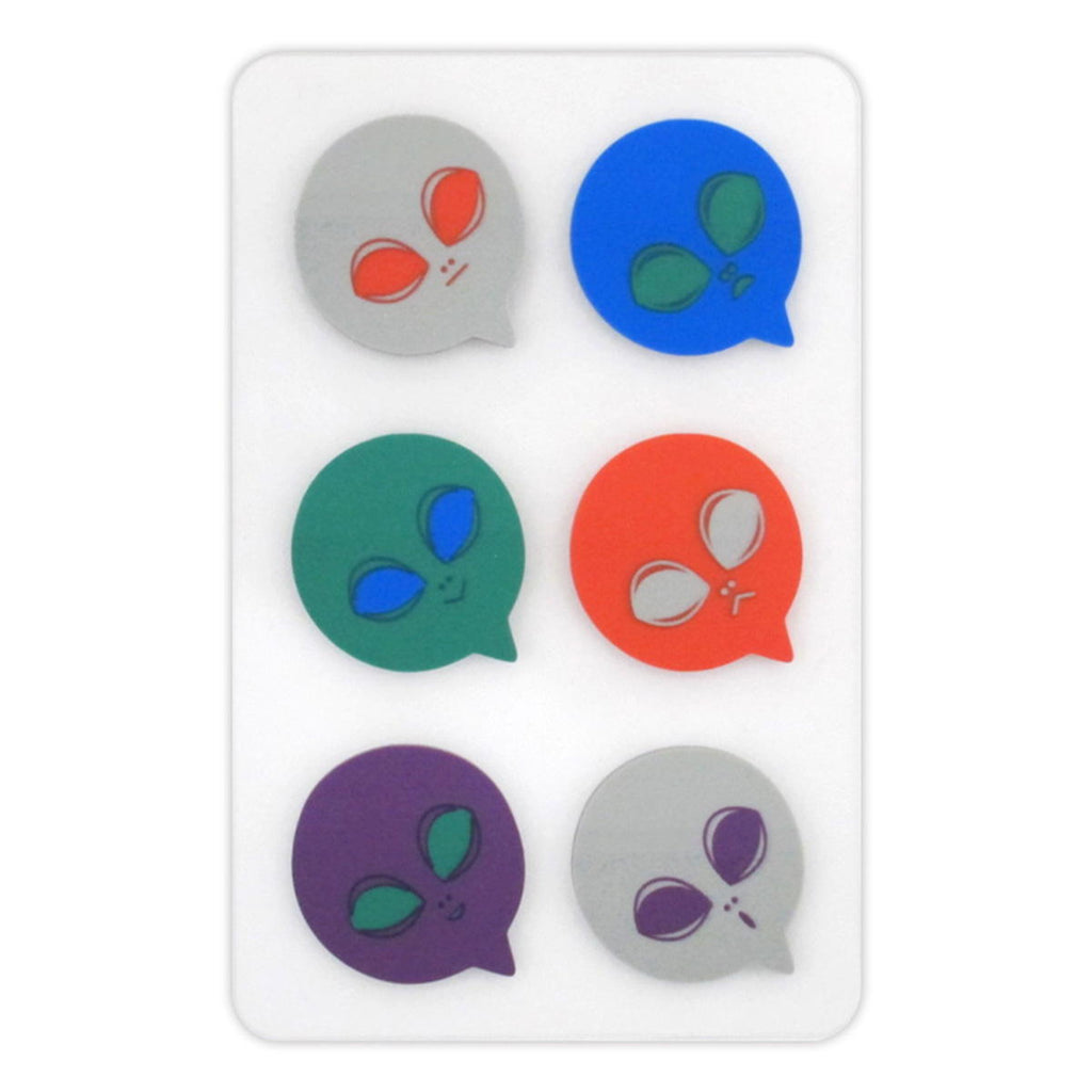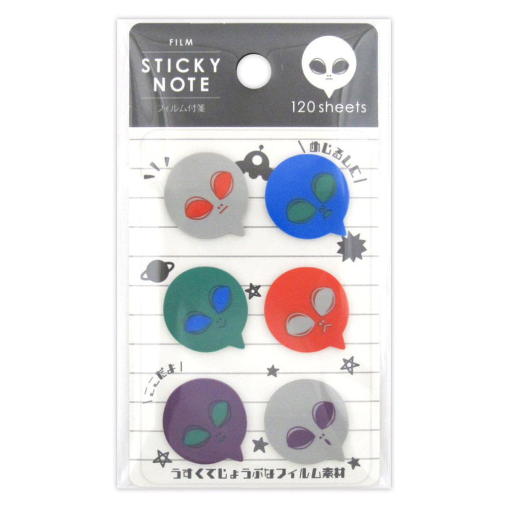 カラフルな宇宙人たちをデザインしたふきだし型のフィルム付箋です。 曲面、凹凸面プラスチックなどに貼る場合、剥がれる恐れがあります。 枚数:120枚(6柄×20枚)。