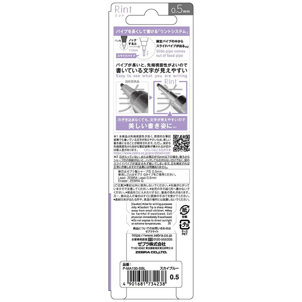 芯径0.5mmのシャープペンシル。 先端視認性が良く、理想的な筆記姿勢でも書いている文字が見えやすいため、美しい書き姿になることが期待される。 ※ただし、良好な先端視認性から良好な筆記姿勢が導かれるか否かは個人差があります。