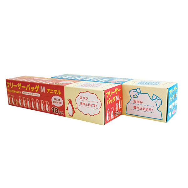 この商品ページは大量購入に対応した「まとめ買い専用ページ」です。大量購入以外のご注文は単品購入ページをご利用ください。厚み0.06mmの食品を入れて冷凍・冷蔵ができるスライダー式のバッグです。 Mサイズ10枚入りです。 白クマ、ペンギンのかわいいアニマル柄です。