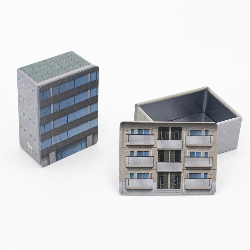 ロボットプラモデルや特撮フィギュアと相性のいいミニチュアのビルです。 缶自体が収納ケースとなっているためプラモデルなどのパーツを収納するのにも便利です。