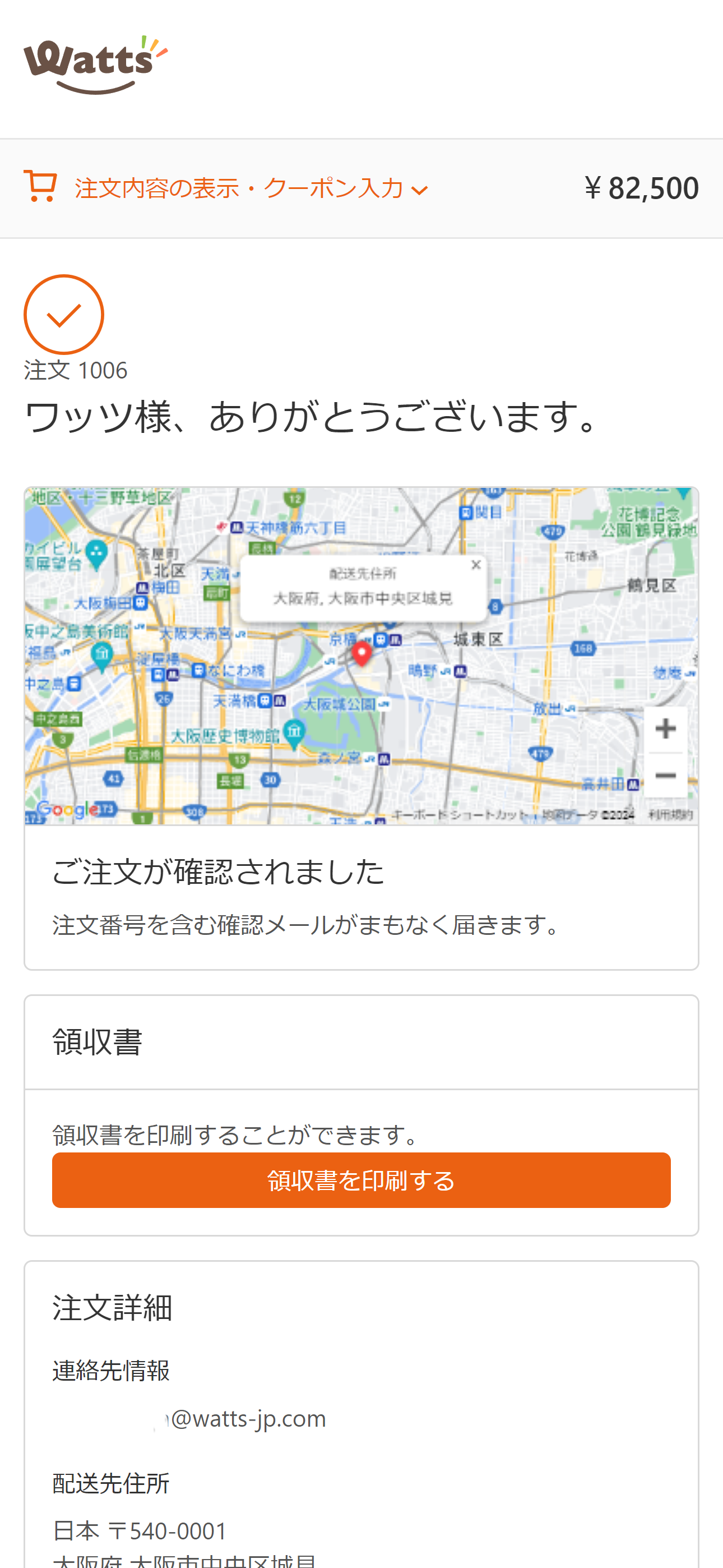 ご注文完了と同時にご注文の確認メールをご登録いただいたメールアドレス宛に自動で送信します。