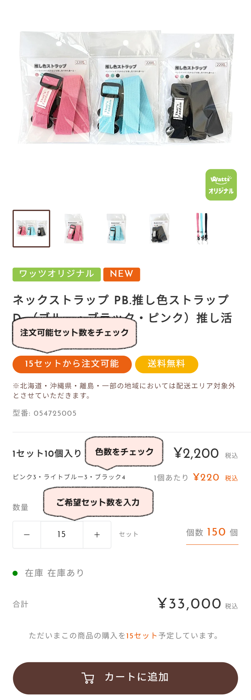 ・商品名の下に記載の「注文可能セット数」以上でご購入いただけます。