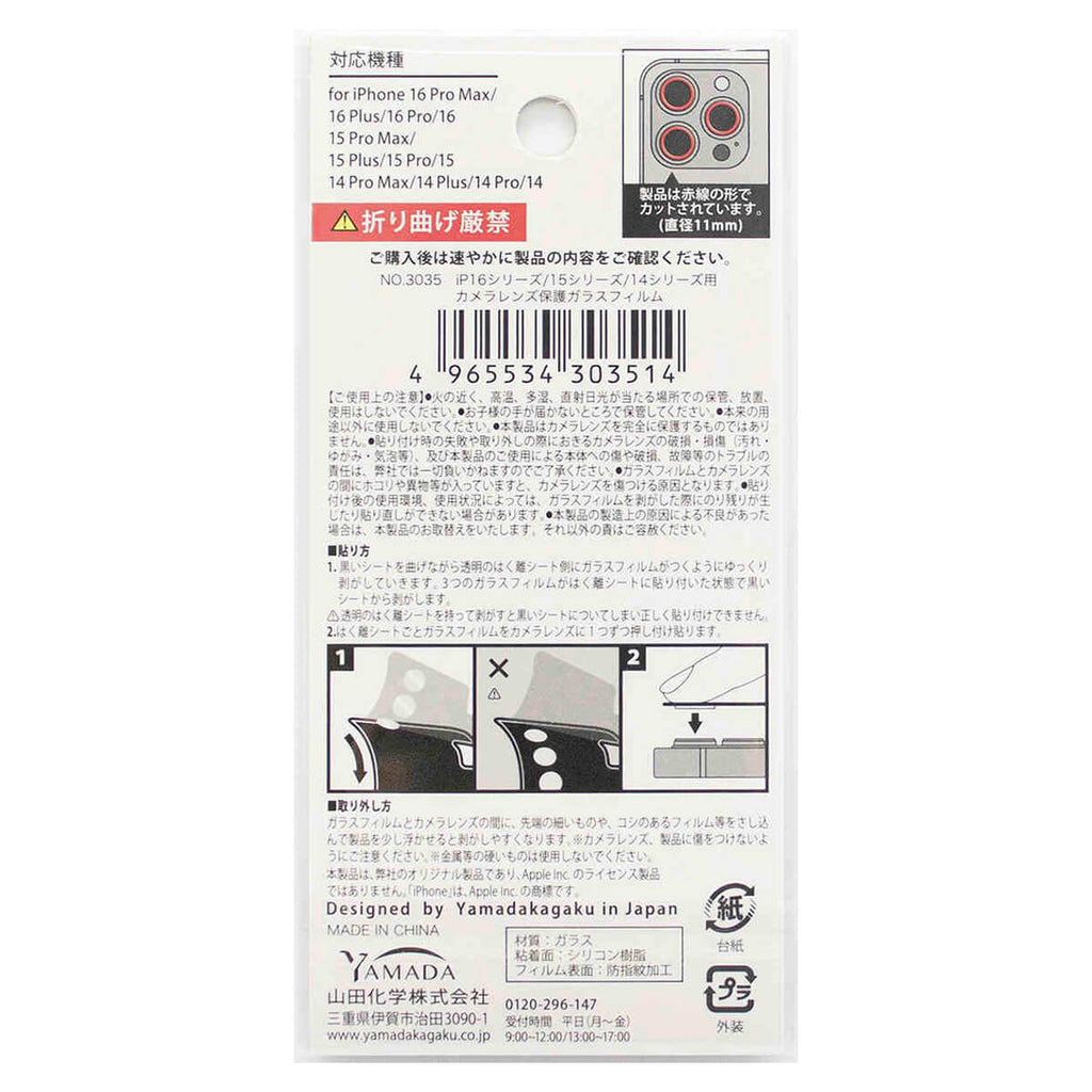 この商品ページは大量購入に対応した「まとめ買い専用ページ」です。大量購入以外のご注文は単品購入ページをご利用ください。iPhone14・15・16各シリーズ全4機種対応のカメラレンズを保護するガラスフィルム。3枚入り。 粘着面:シリコン樹脂、フィルム表面:防指紋加工【サイズ】 約φ11mm、
