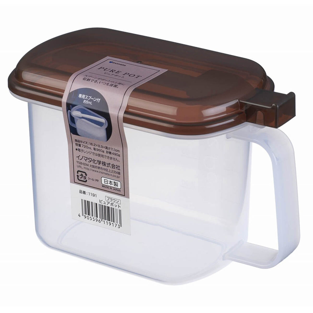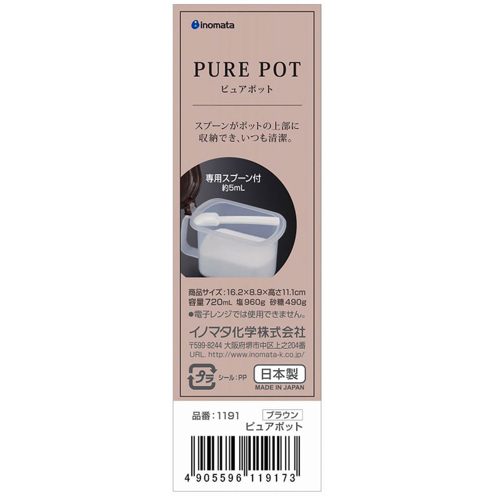 この商品ページは大量購入に対応した「まとめ買い専用ページ」です。大量購入以外のご注文は単品購入ページをご利用ください。ピュアポットは、塩、砂糖、小麦粉などの保存に便利な保存ケースです。 カラーはホワイトとブラウンがあり、付属のスプーンは上部に収納できます。 別売りのポットハウスに2つ収納でき、ブラウンのポットハウスにピッタリ収納できます。