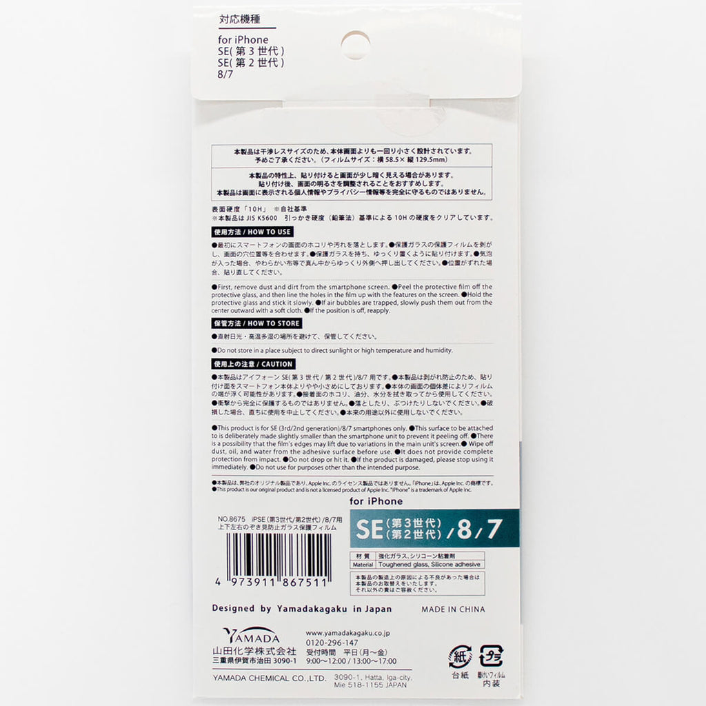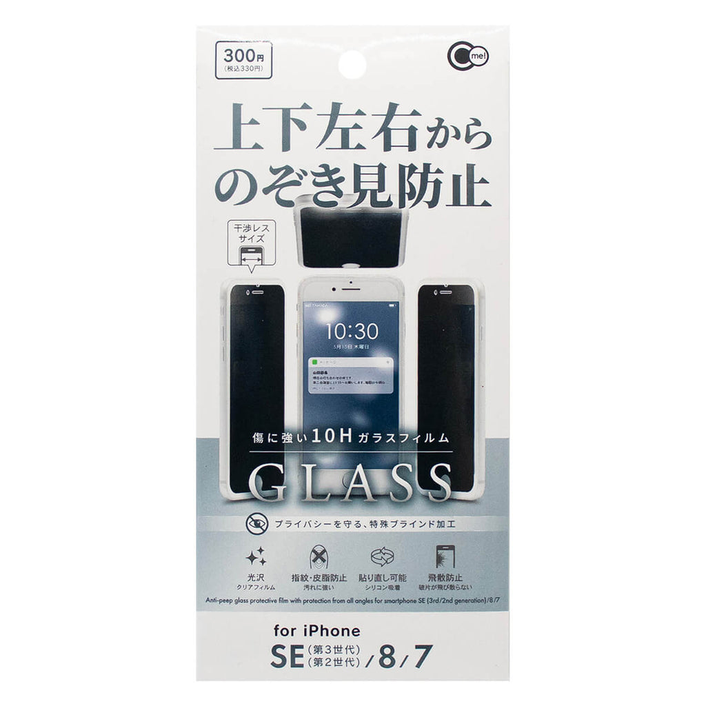 この商品ページは大量購入に対応した「まとめ買い専用ページ」です。大量購入以外のご注文は単品購入ページをご利用ください。上下左右からのぞき見を防止するフィルムです。 ケースに干渉しにくい設計サイズです。 【対応機種】:iPhoneSE(第3世代/第2世代)/8/7