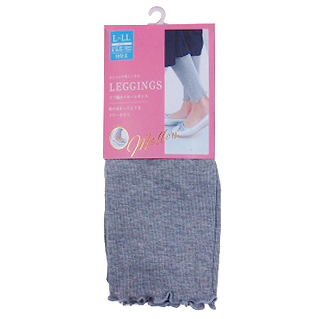 この商品ページは大量購入に対応した「まとめ買い専用ページ」です。大量購入以外のご注文は単品購入ページをご利用ください。裾が波打った様なメロー仕立てのリブ編みレギンス 10分丈L-LL