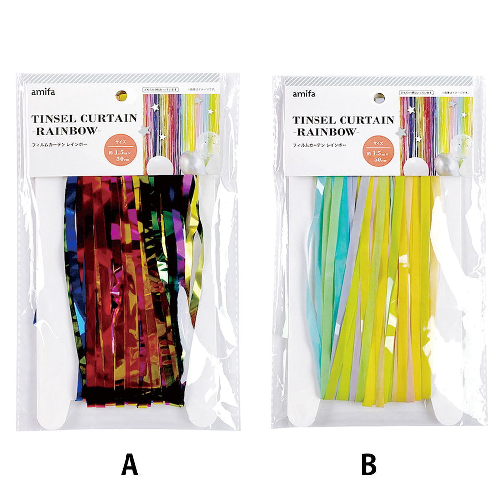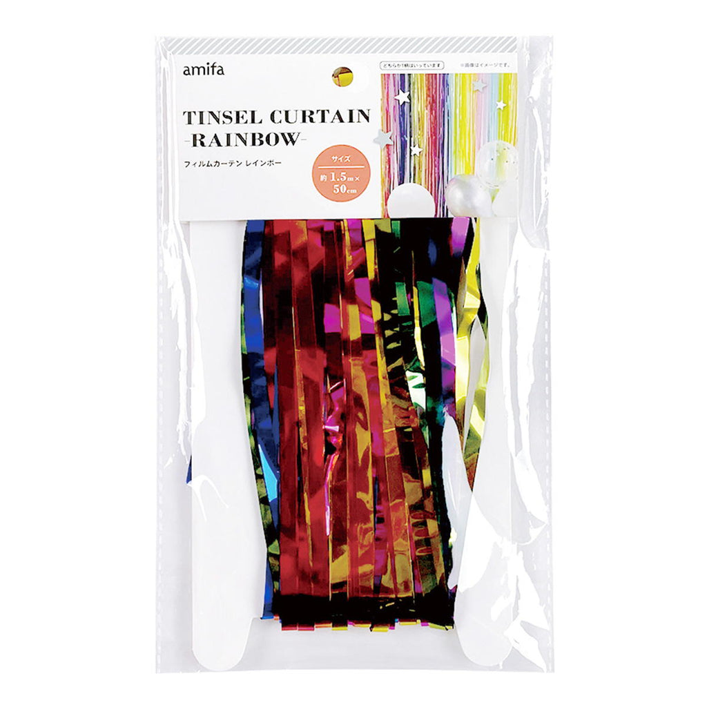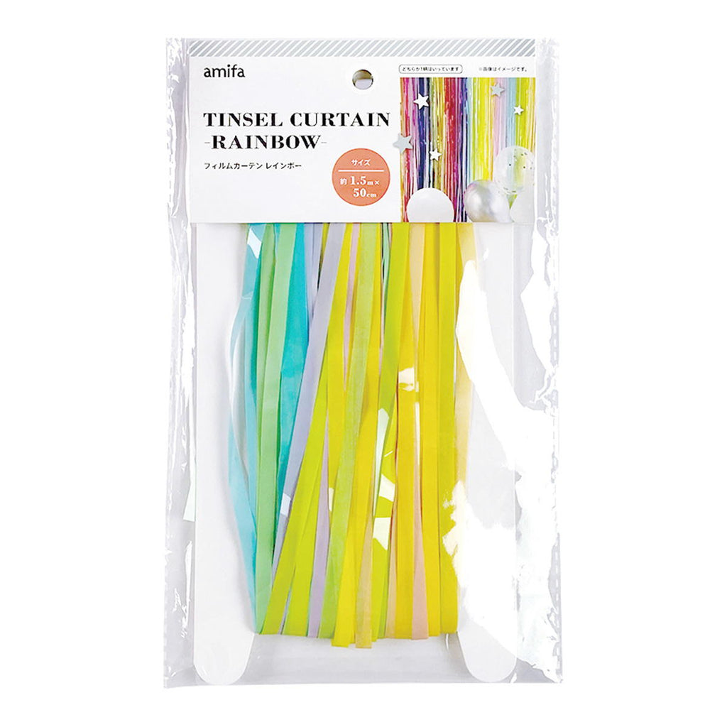虹色のフィルムカーテンです。 壁面に貼って飾り付けができます。