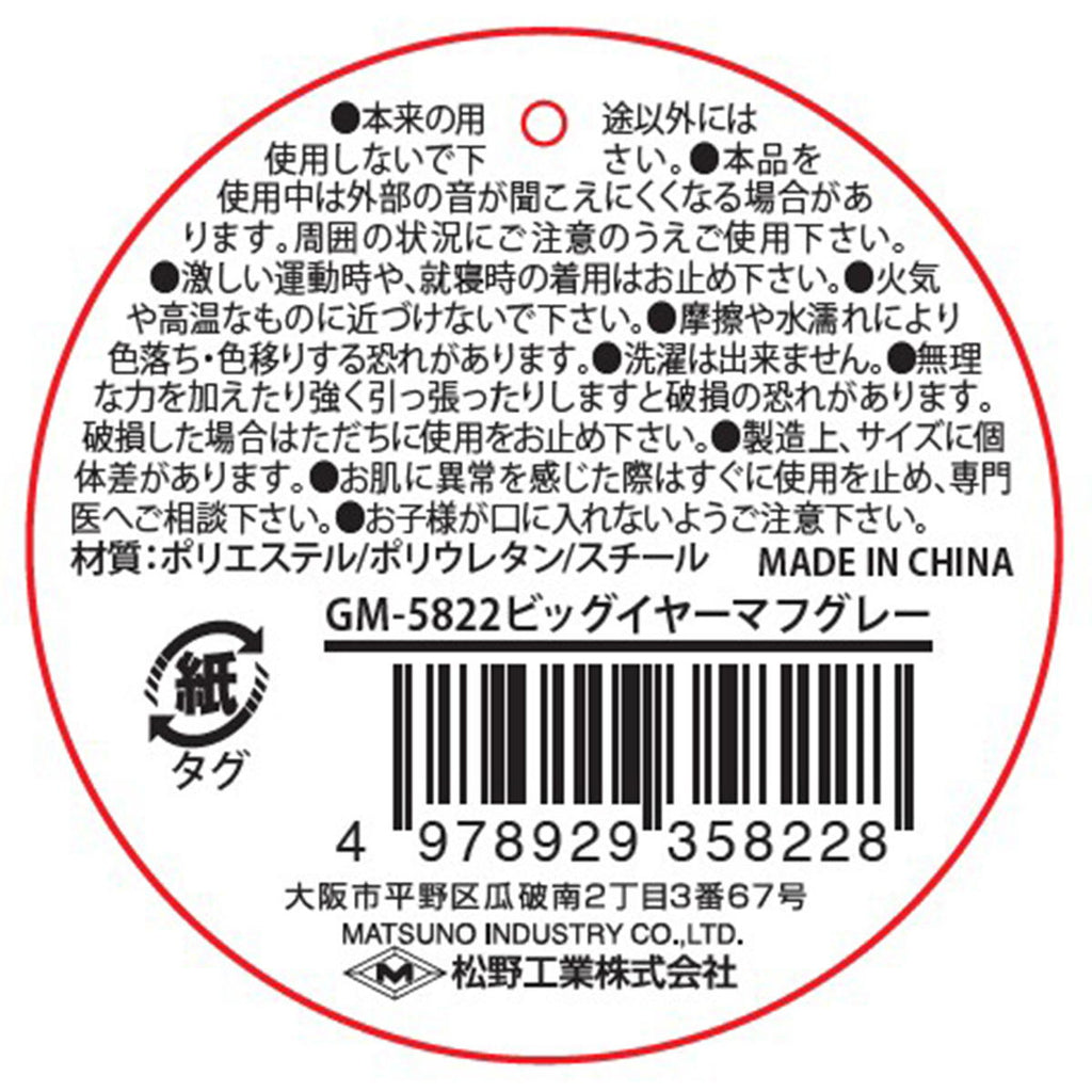 【まとめ買い】ビッグイヤーマフ グレー0603/308482