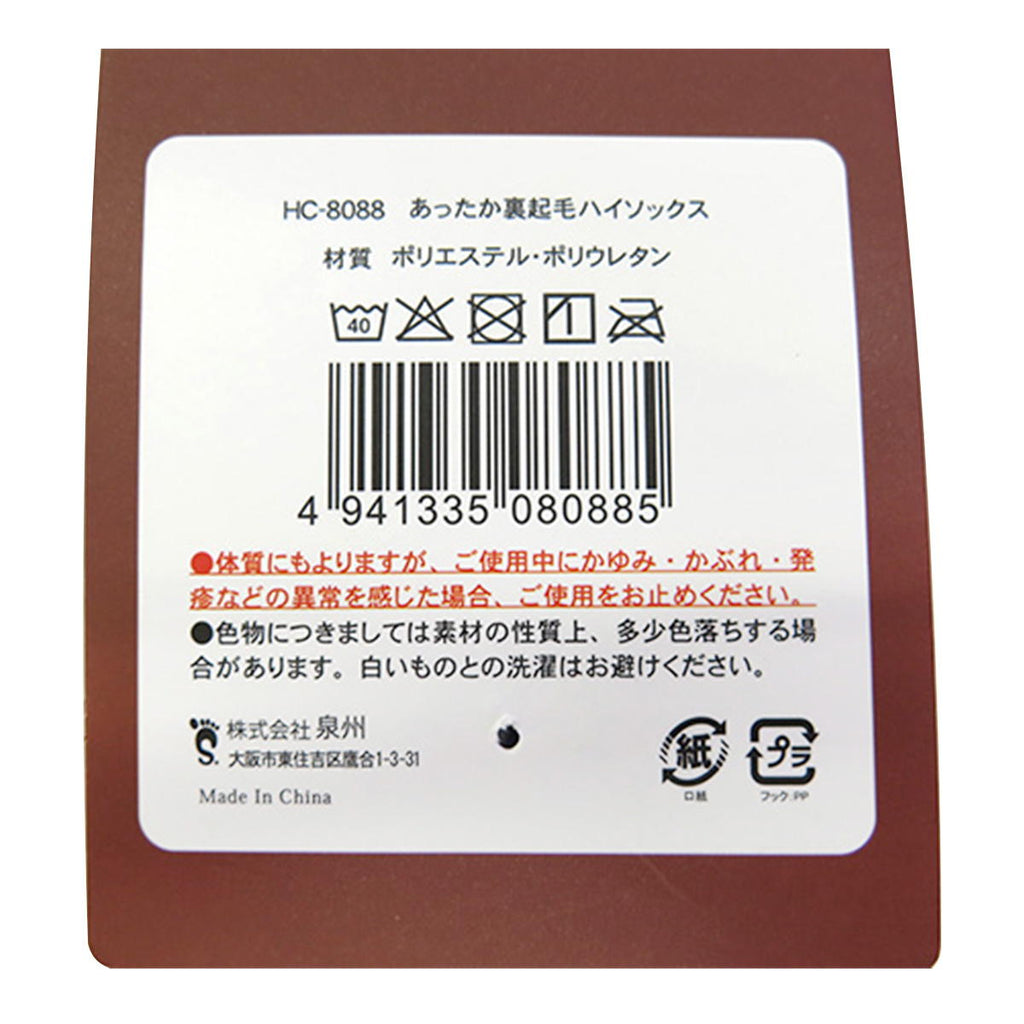 あったか裏起毛仕上げのハイソックス。 かかと無し。 ストレッチ素材。 23-25cm。