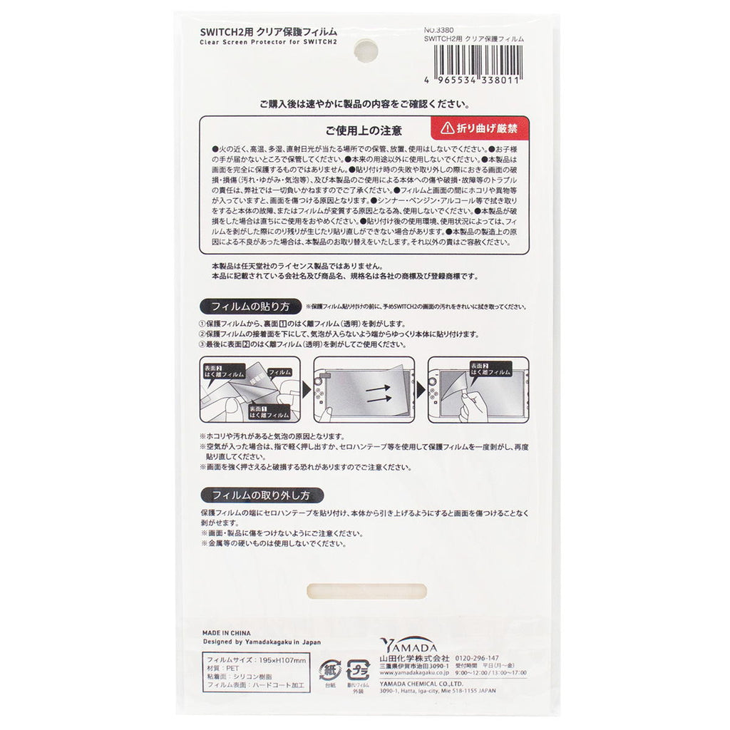 SWITCH2専用のキズに強いハードコート加工が施されたクリアタイプの保護フィルムです。 対応機種:SWITCH2