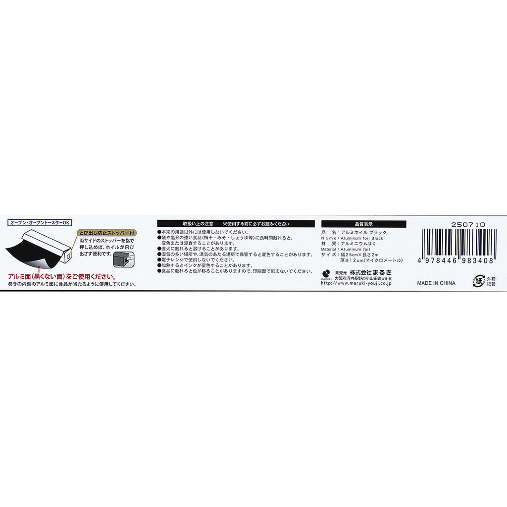 とび出し防止ストッパー付き、熱吸収のよい黒色アルミホイル。