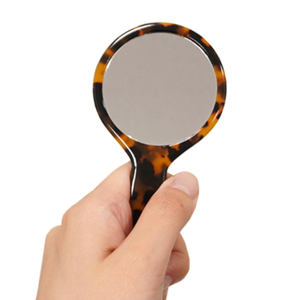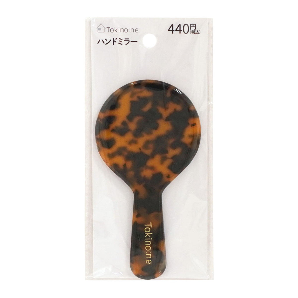 べっ甲風デザインのハンドミラーです。 手のひらサイズで持ち運びしやすいです。
