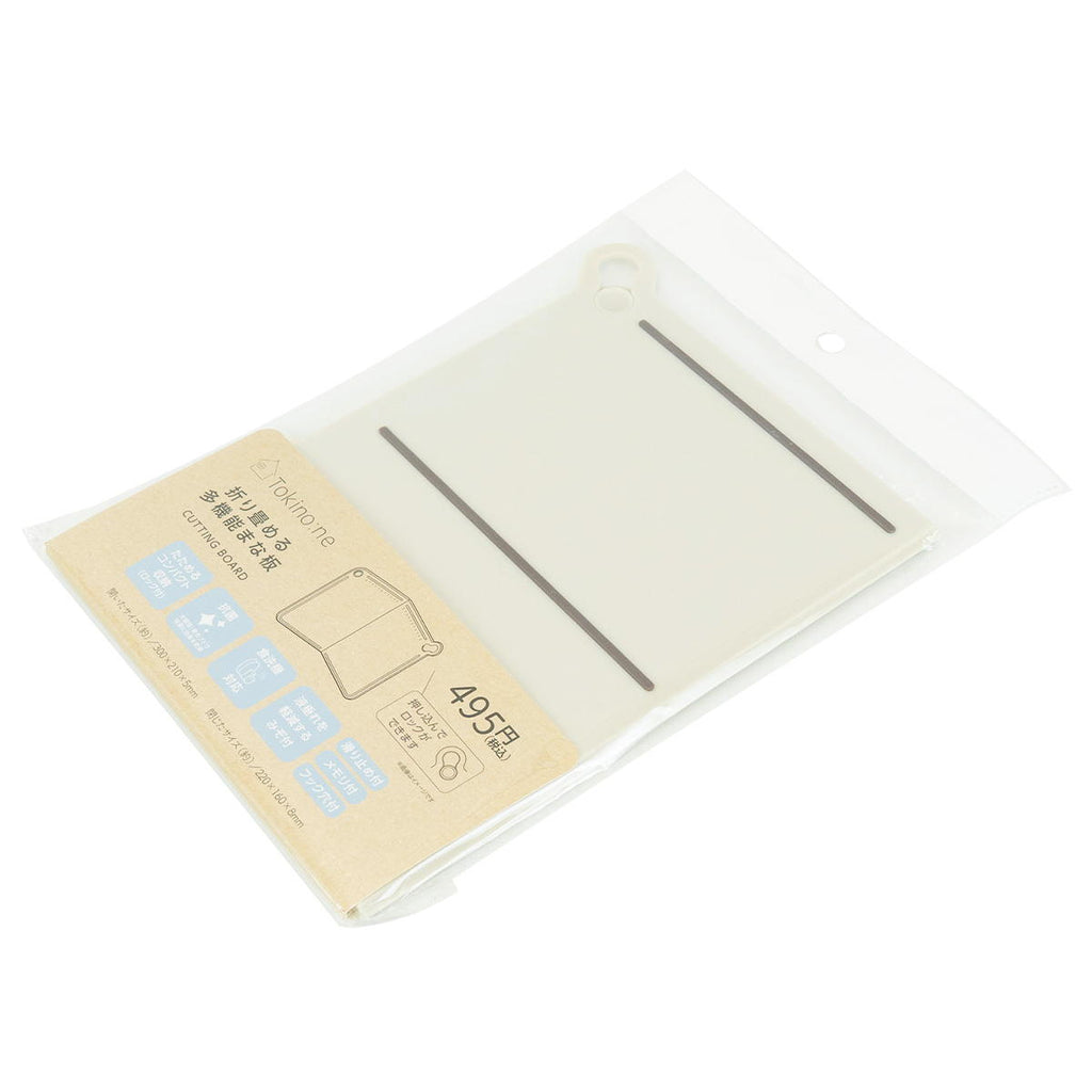 切った食材をさっと入れるのに便利な折りたたみ形状の抗菌まな板です。