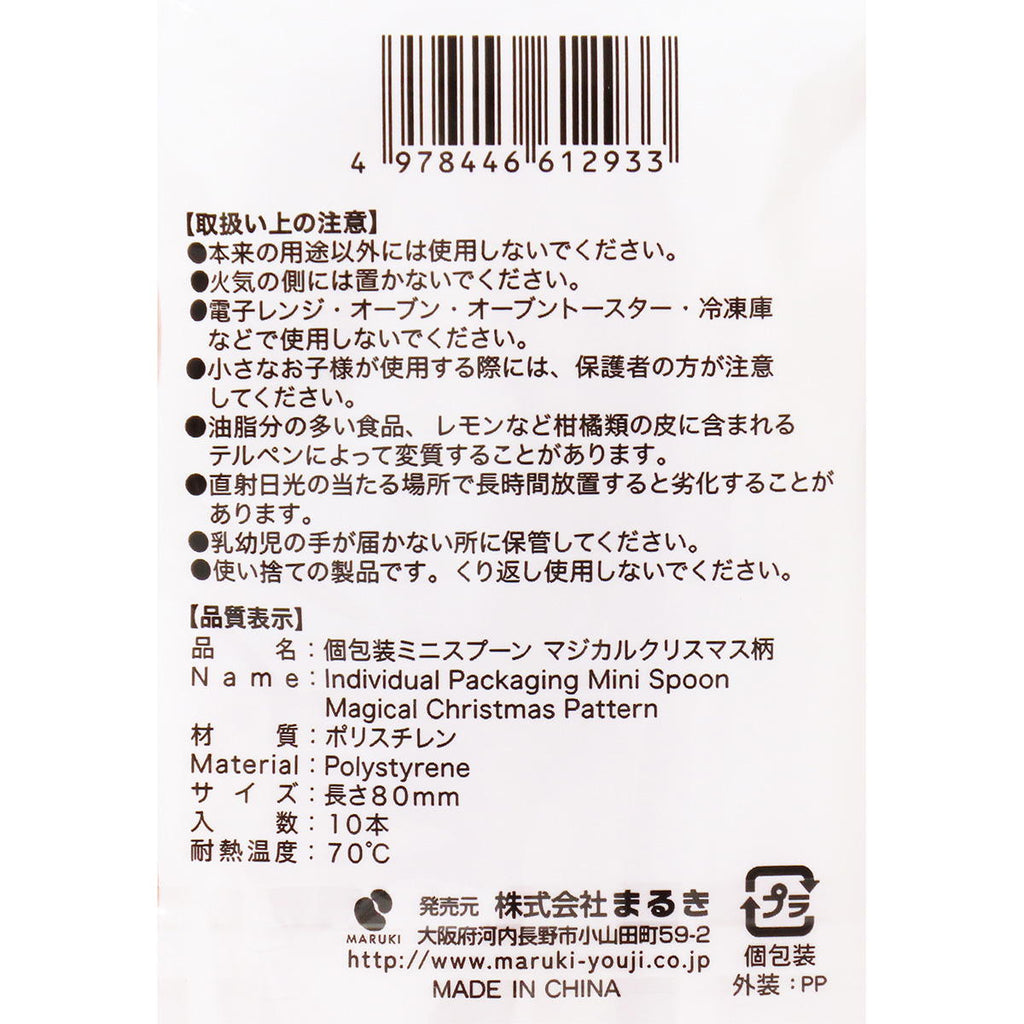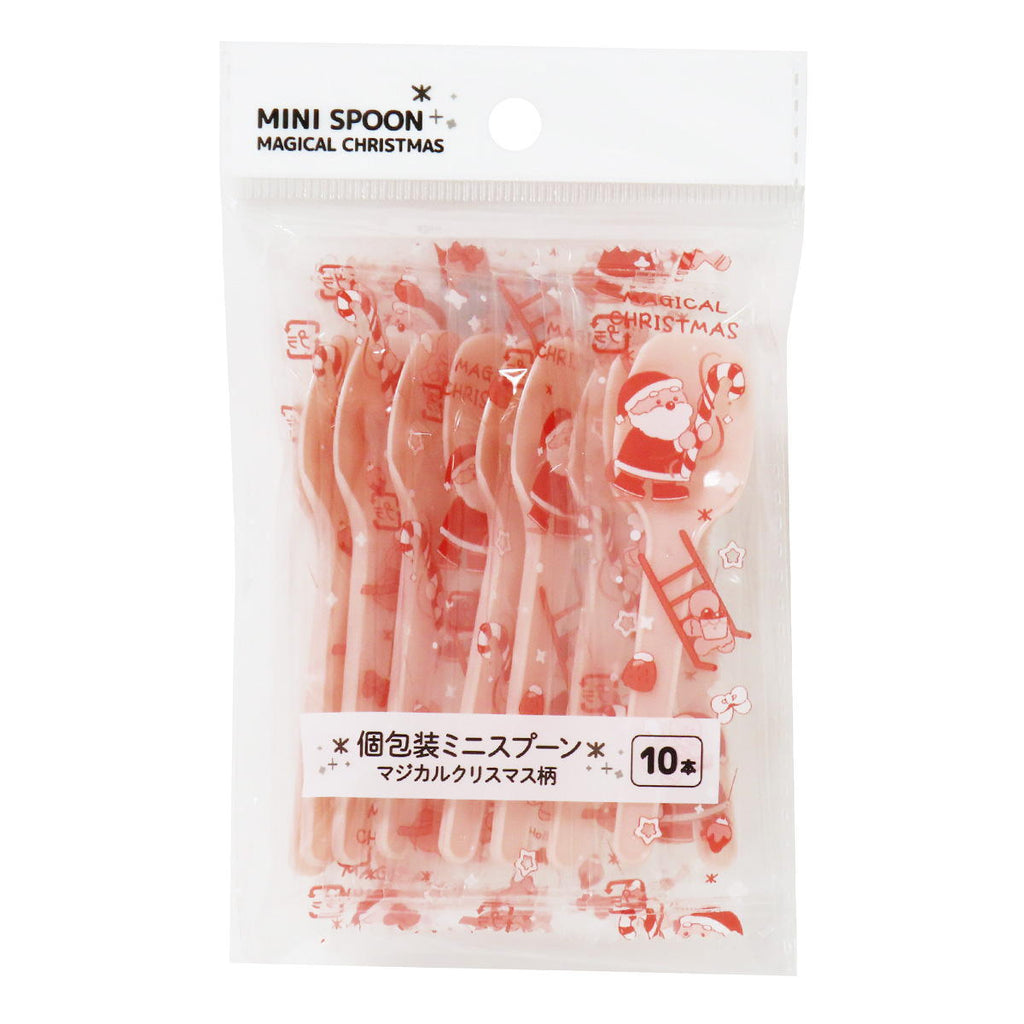 個包装袋入のミニスプーン、マジカルクリスマス柄。