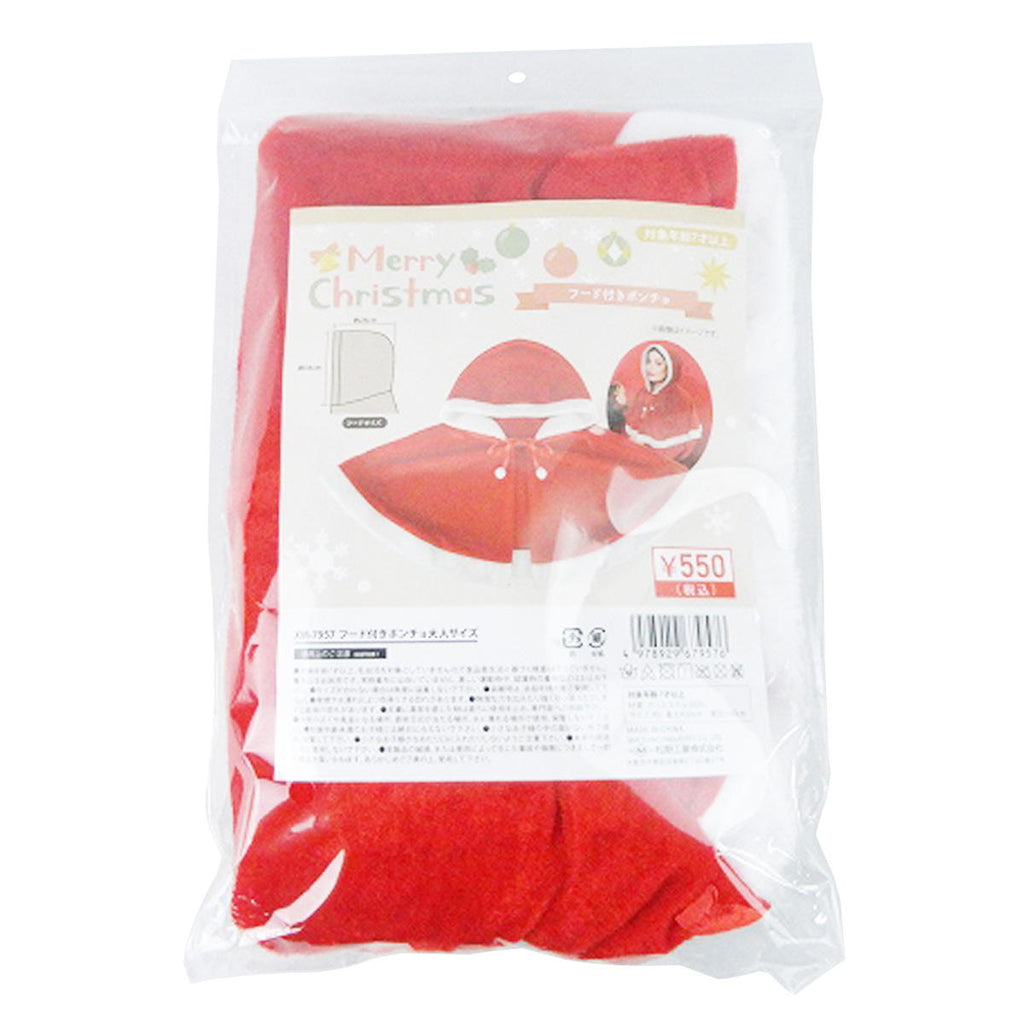 クリスマスの仮装にぴったりな大人サイズのフード付きポンチョです。