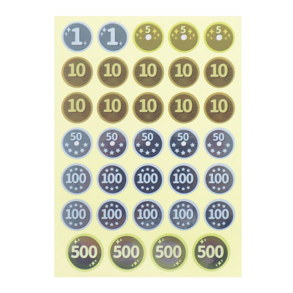 おこづかいの記録や計算の練習にぴったりな、コイン風デザインのポイントシールです。 170片(34片×5シート)