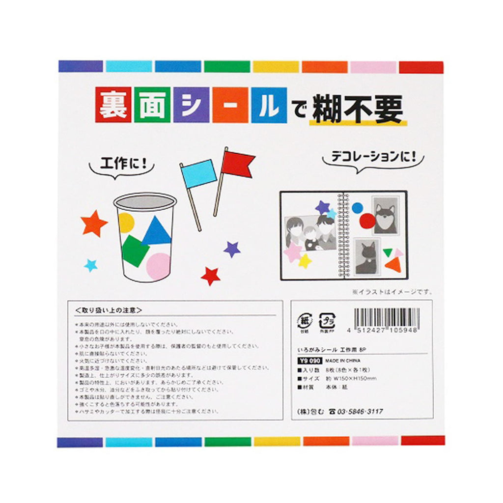 工作やデコレーションに使えるいろがみシール。 裏面がシールなので糊が必要ありません。 8枚(8色×各1枚)入