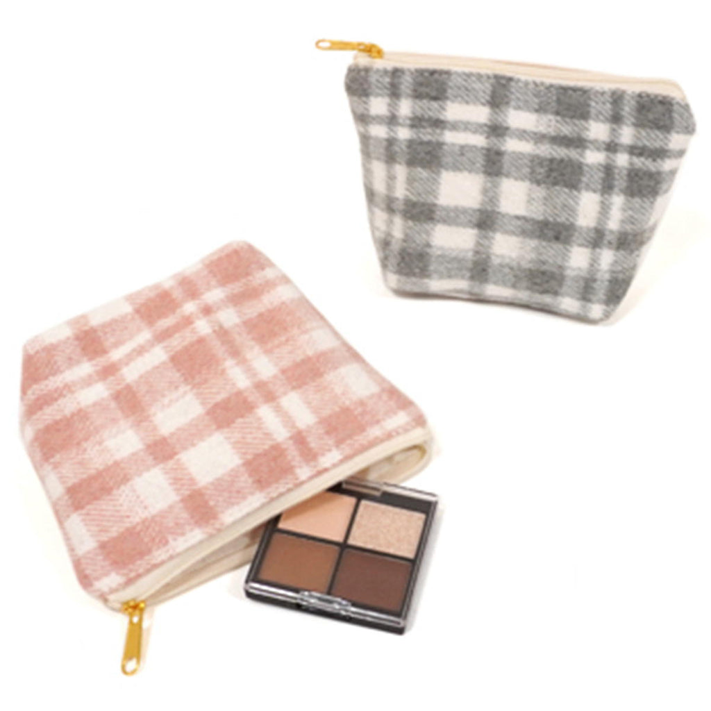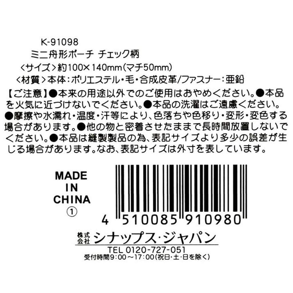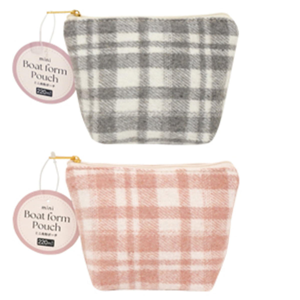 あたたかみのあるチェック柄生地と合皮の組み合わせが大人可愛いミニ舟形ポーチです。 小物やコスメ類の収納に便利です。
