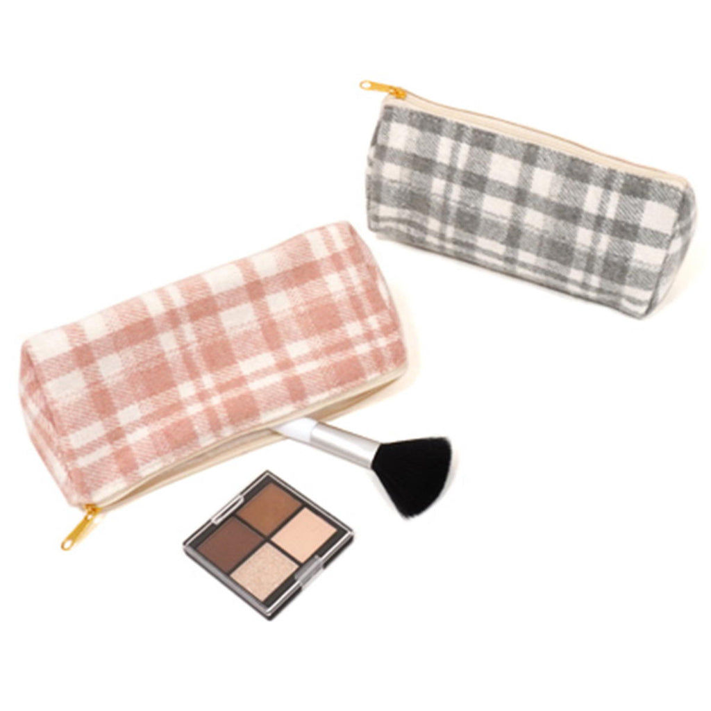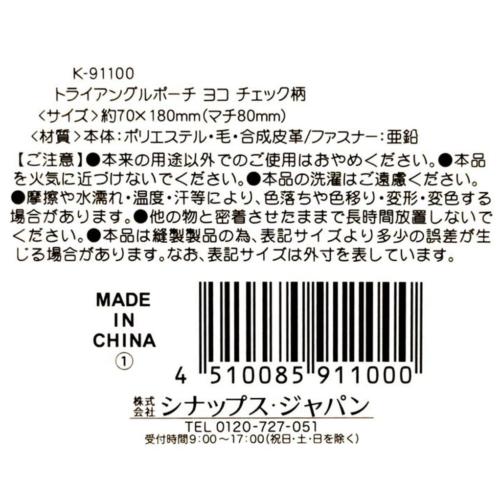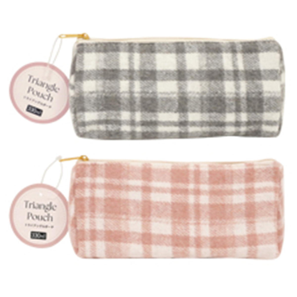 あたたかみのあるチェック柄生地と合皮の組み合わせが大人可愛い横長のトライアングルポーチです。 小物の収納はもちろんペンケースとしてもお使いいただけます。